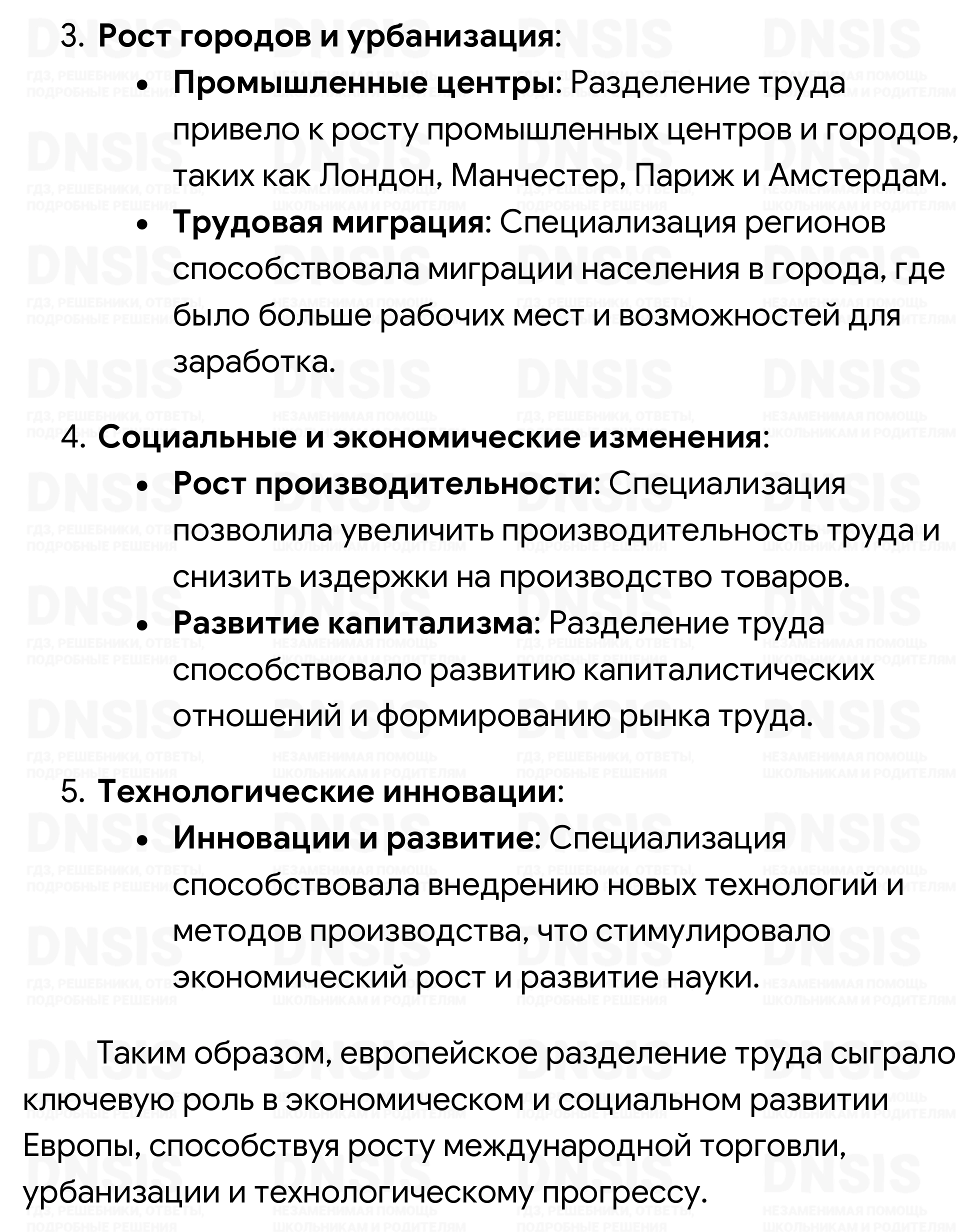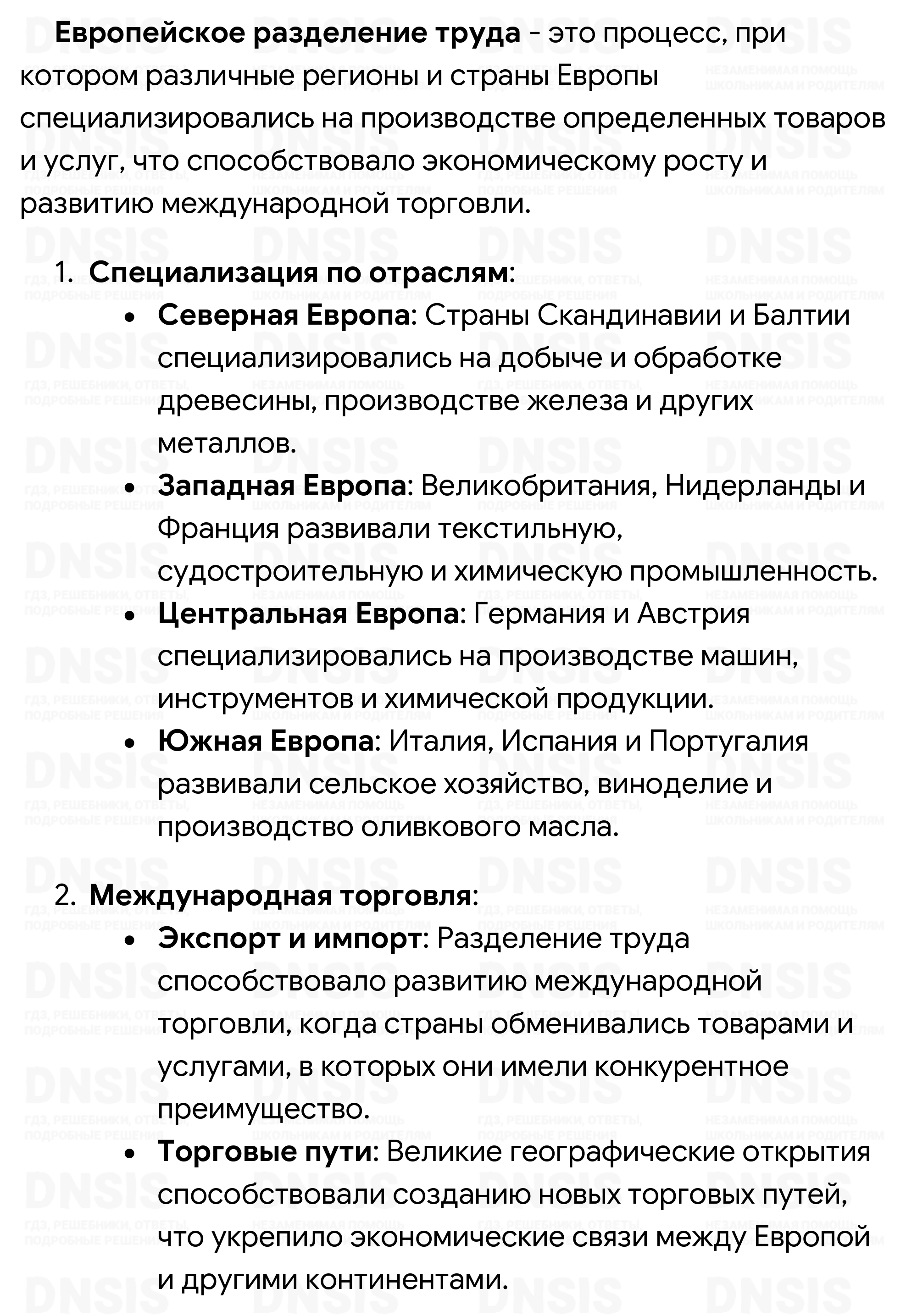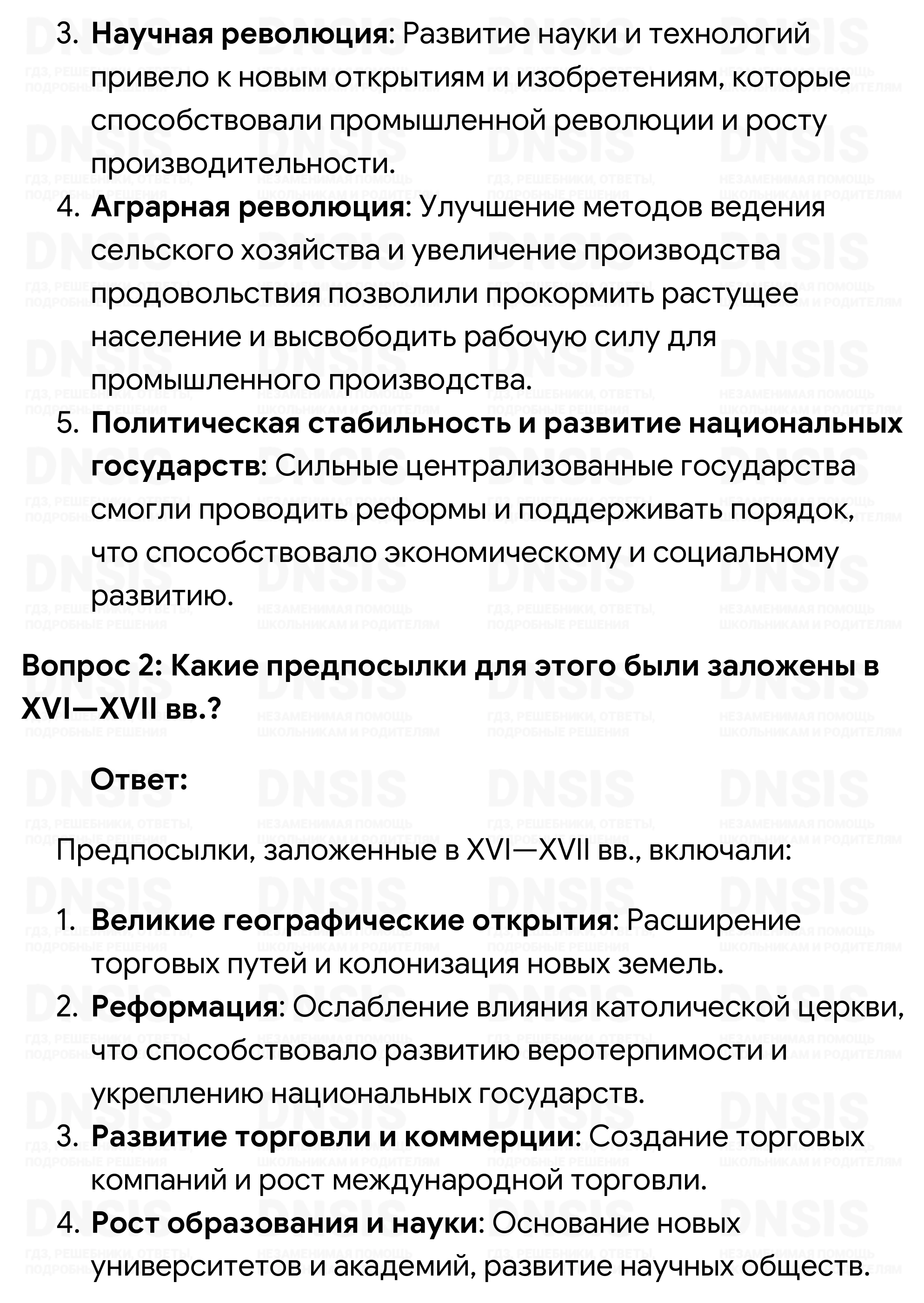 1. Как вы думаете, в связи с чем Европа получила возможность стать лидером мира? 2. Какие предпосылки для этого были заложены в XVI—XVII вв.? 3. Что, с вашей точки зрения, заставило страны Европы провести модернизацию? 4. Используя дополнительные источники информации (в том числе Интернет), запишите в тетрадь, какие изменения принесла с собой аграрная революция. 5. Используя Интернет и другие источники, подготовьте сообщение о европейском разделении труда. (При выполнении данного задания воспользуйтесь памяткой на с. 236—237.)