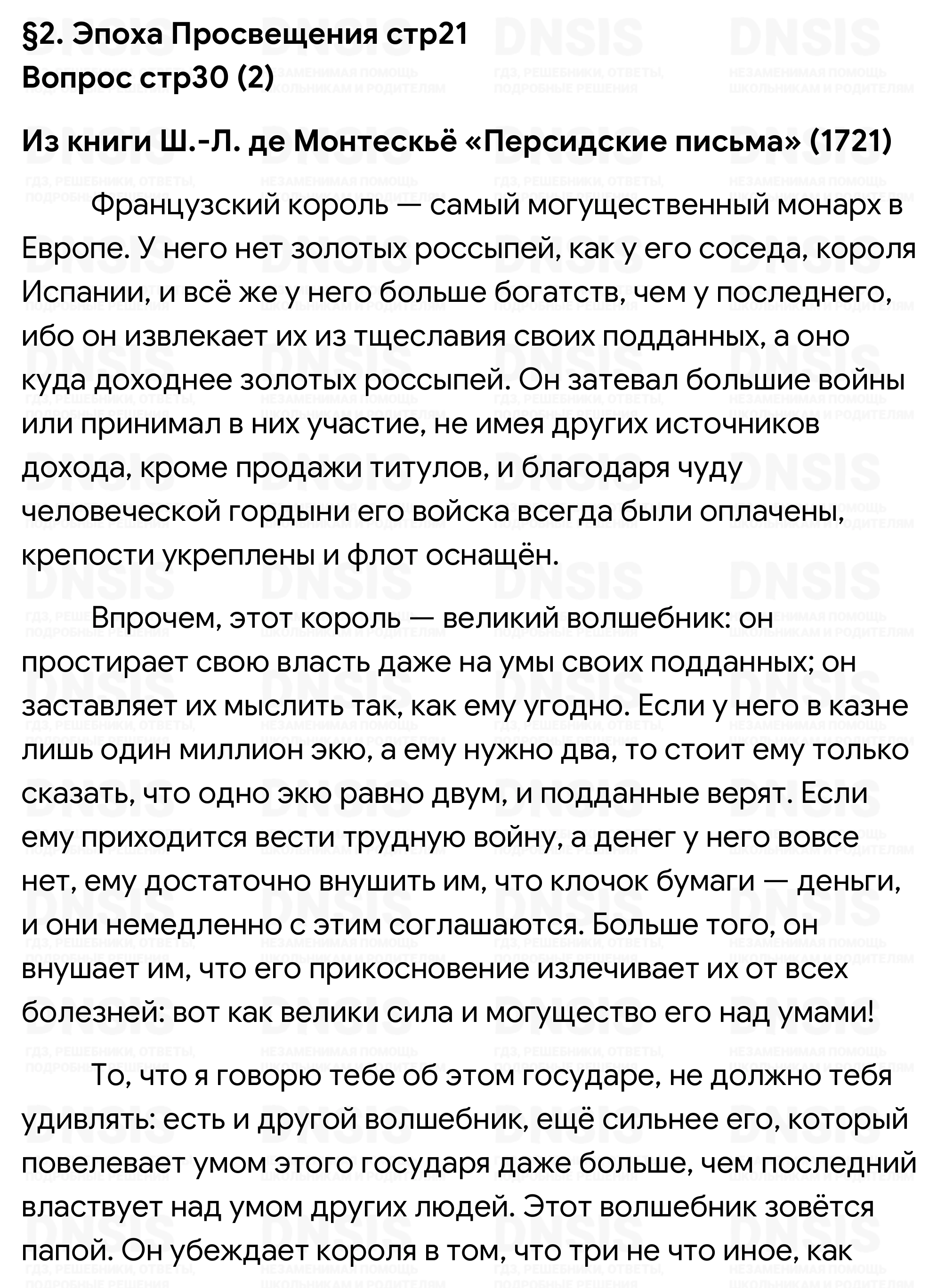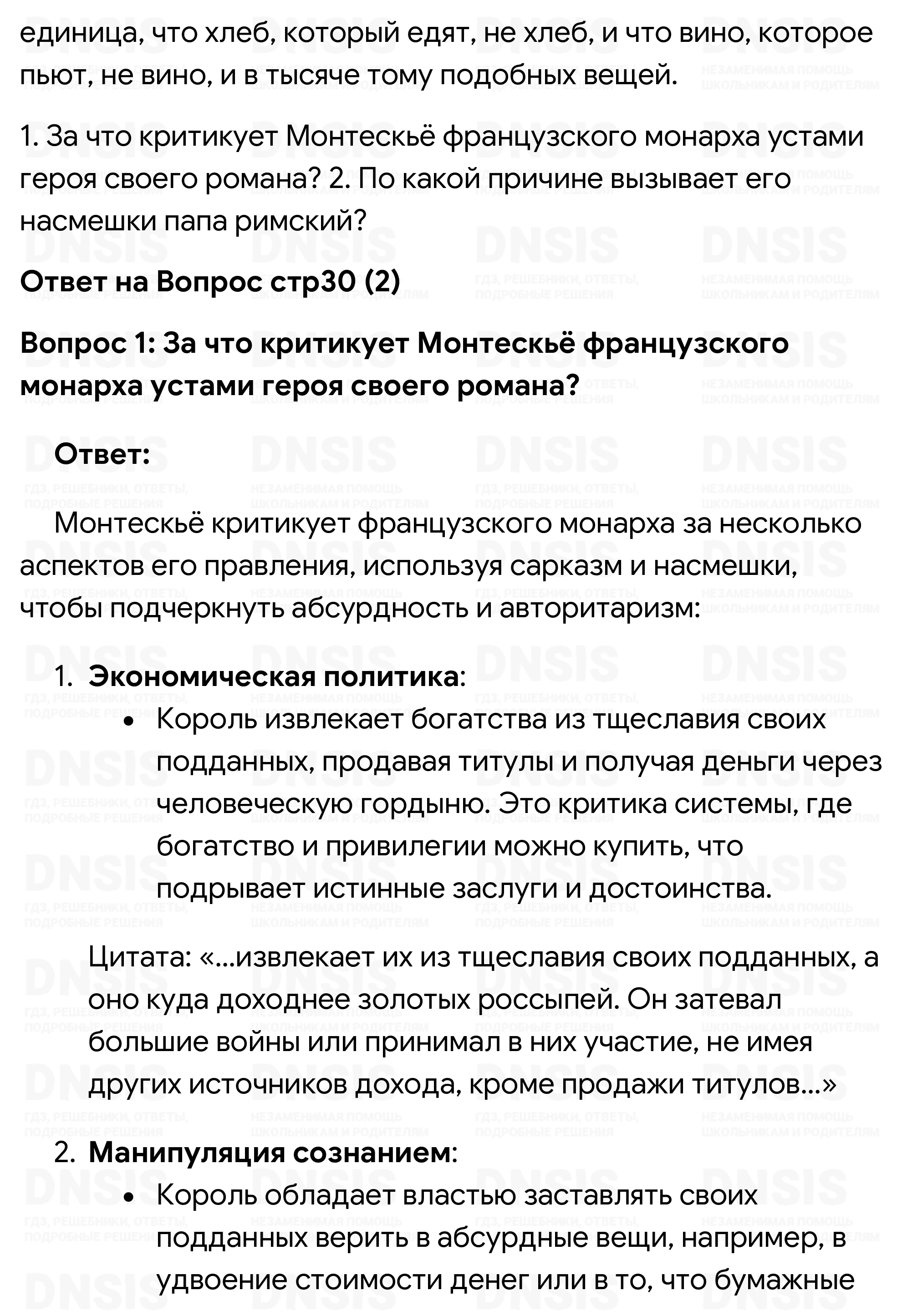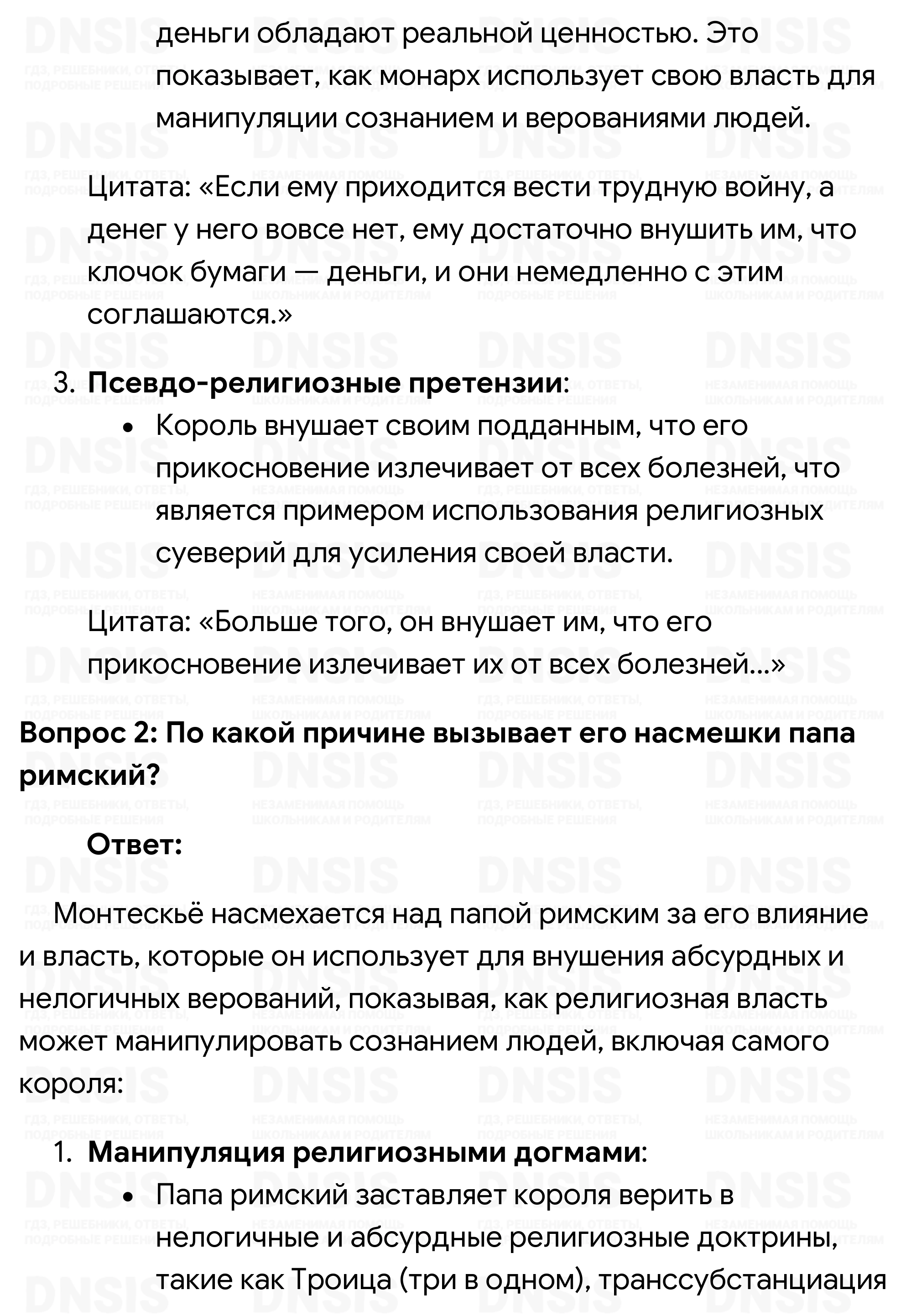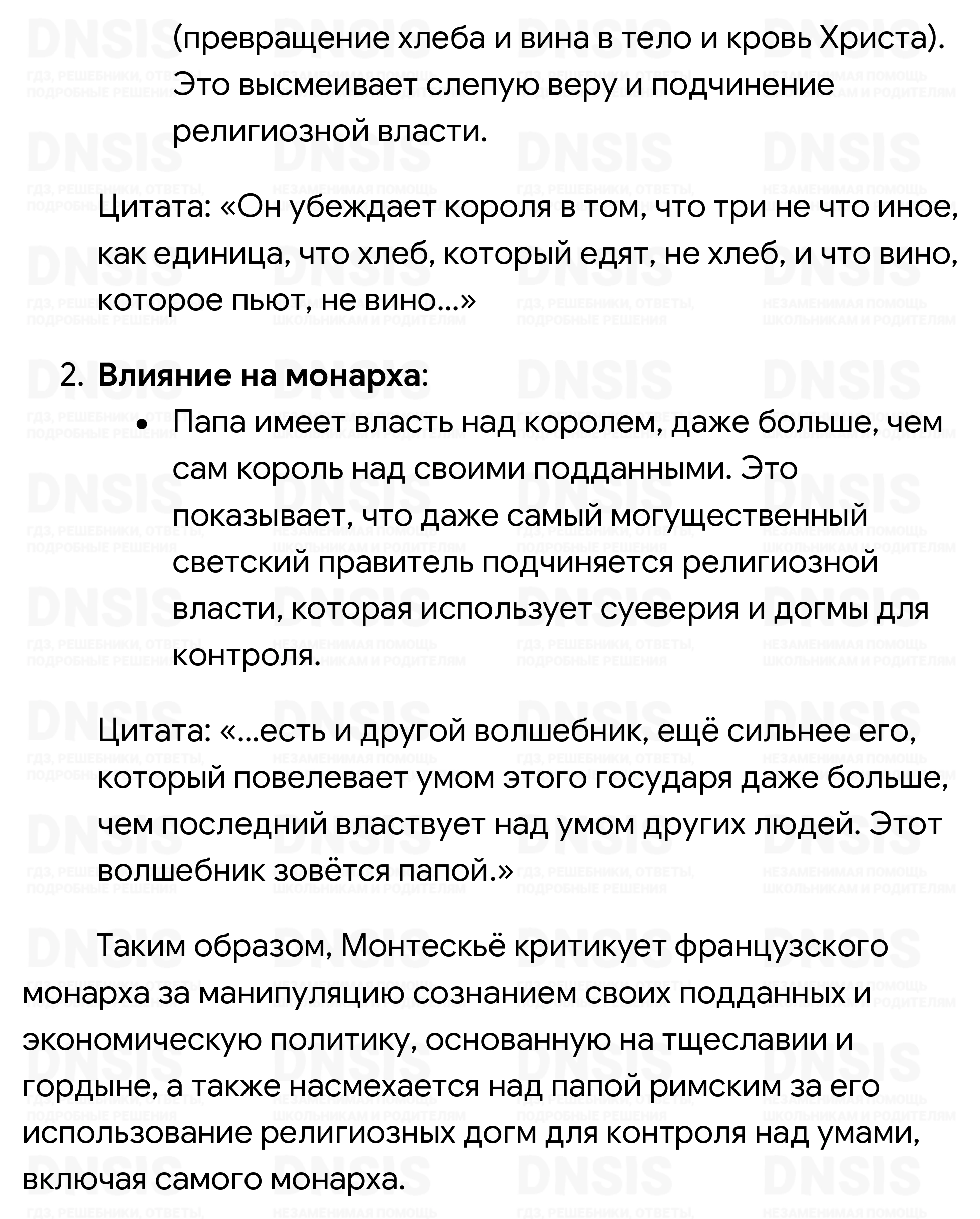 1. За что критикует Монтескьё французского монарха устами героя своего романа? 2. По какой причине вызывает его насмешки папа римский?