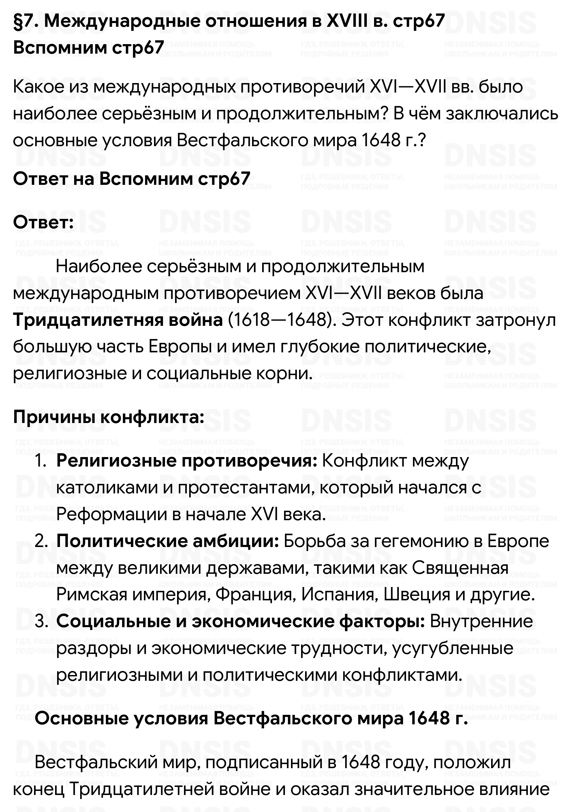 Какое из международных противоречий XVI—XVII вв. было наиболее серьёзным и продолжительным? В чём заключались основные условия Вестфальского мира 1648 г.?