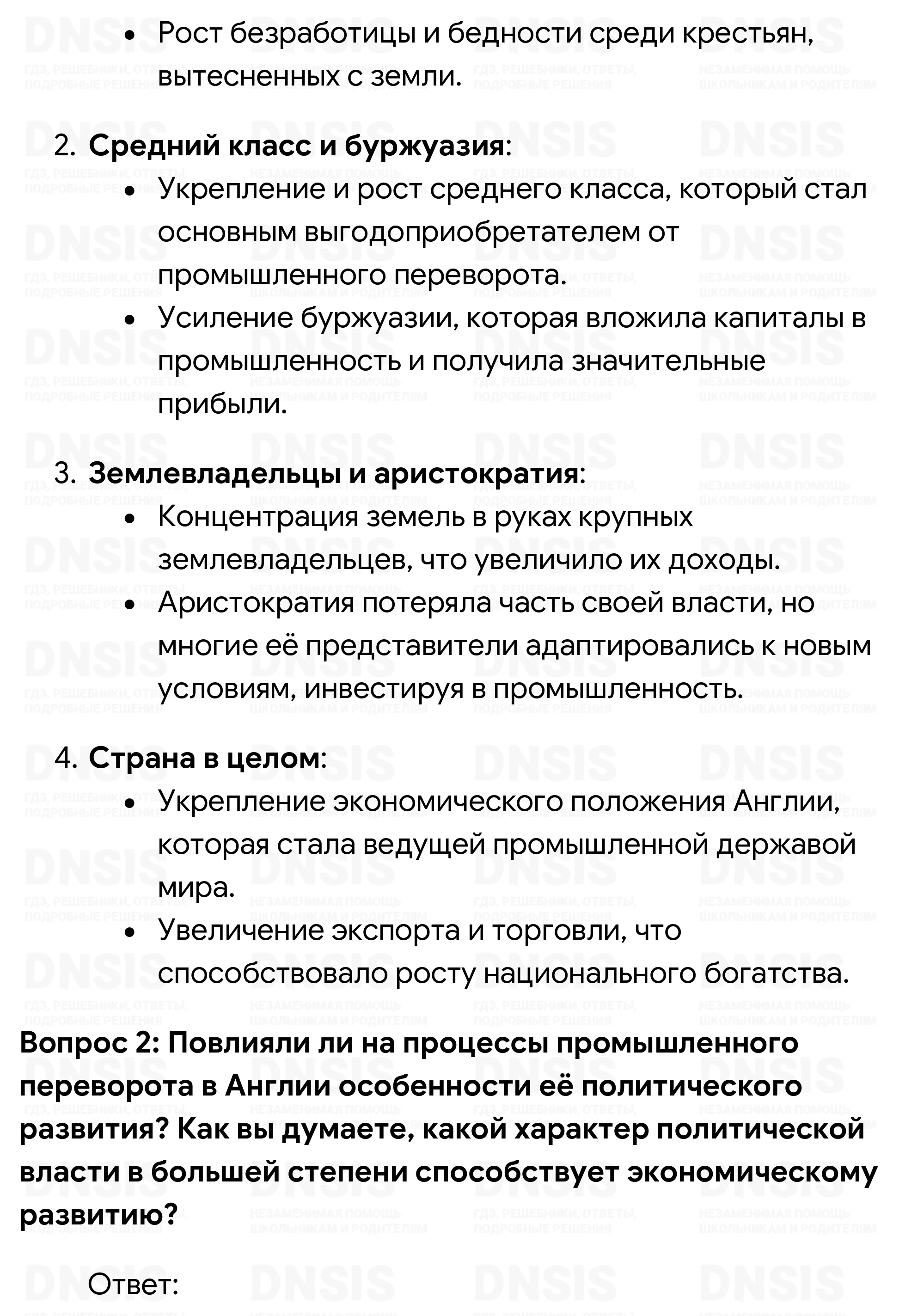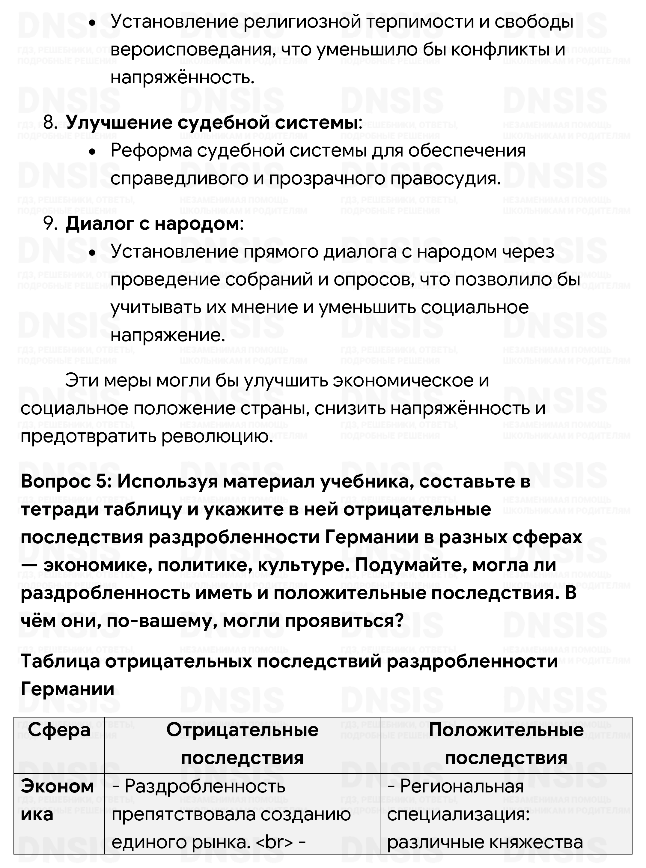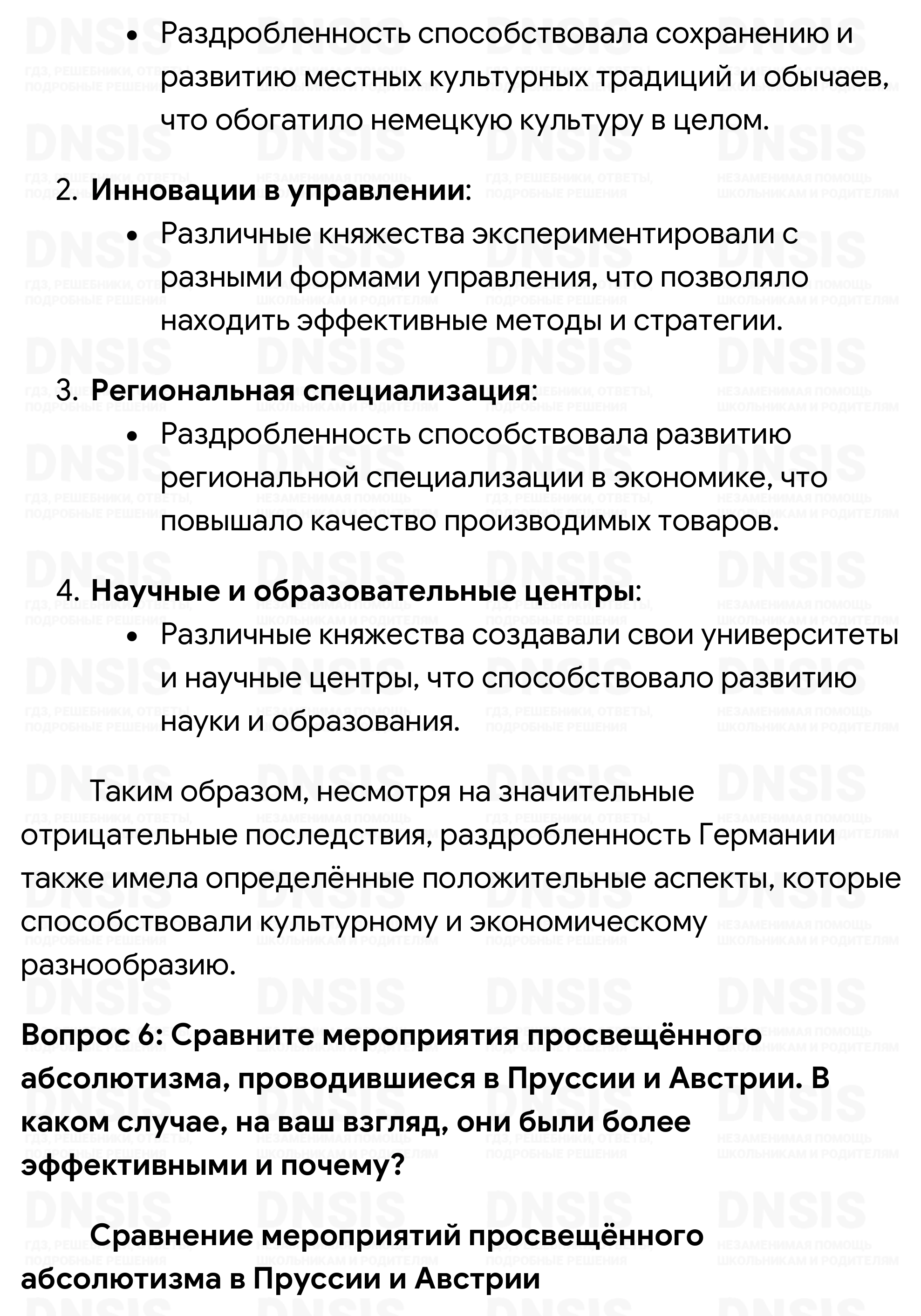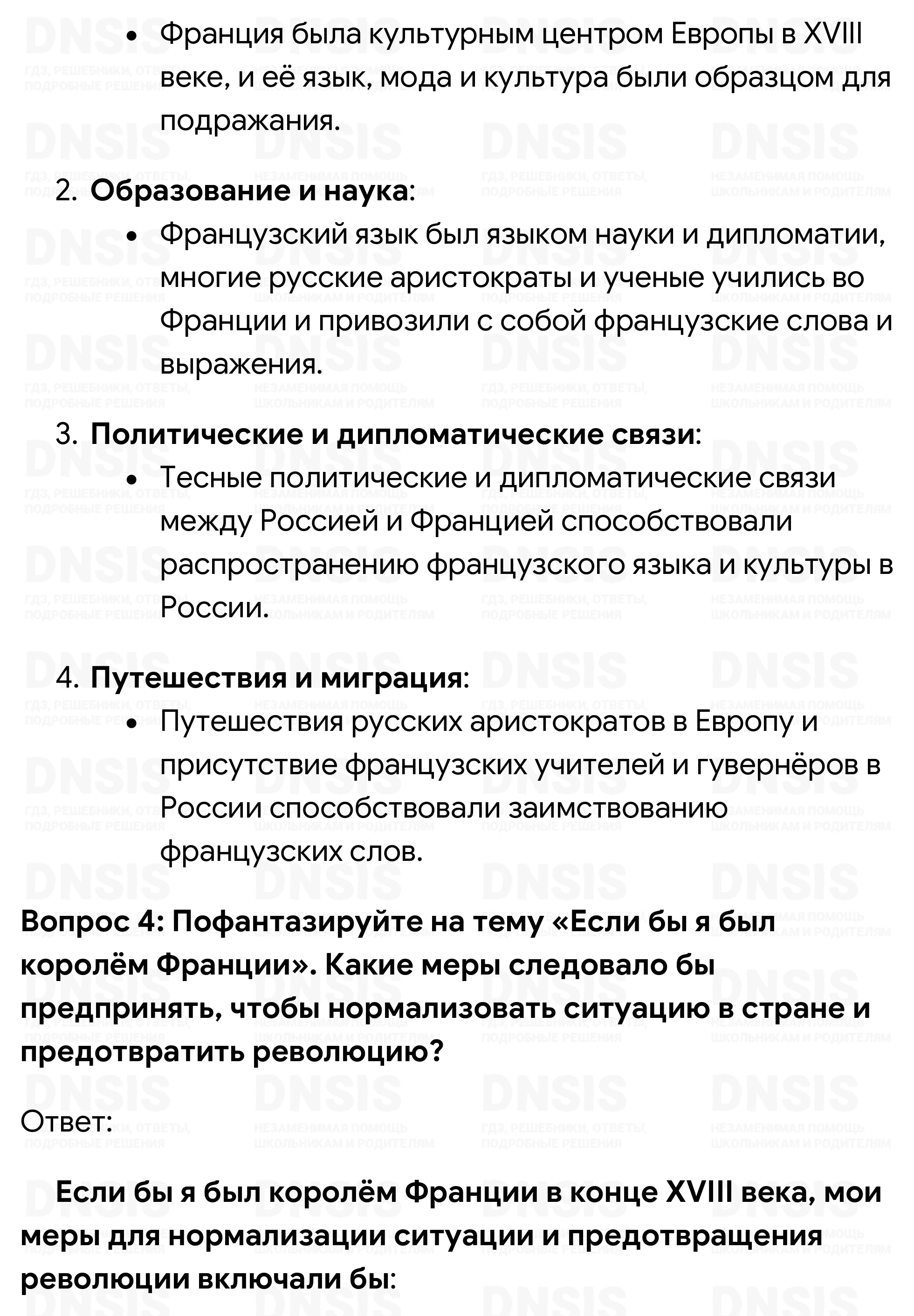 1. Подумайте, какие изменения произошли в экономической жизни Англии во второй половине XVIII в. Какие это имело последствия для различных слоёв населения и для страны в целом? 2. Повлияли ли на процессе промышленного переворота в Англии особенности её политического развития? Как вы думаете, какой характер политической власти в большей степени способствует экономическому развитию? 3. Франция, её язык и культура были очень популярны в России XVIII в. Это отразилось в русском языке, в который именно тогда вошли такие слова, как, например, «букет», «десерт», «костюм». Постарайтесь выяснить, какими ещё словами французского происхождения пополнился в XVIII в. русский язык. Каких сфер жизни общества они касались? Чем вызывались эти заимствования? 4. Пофантазируйте на тему «Если бы я был королём Франции». Какие меры следовало бы предпринять, чтобы нормализовать ситуацию в стране и предотвратить революцию? 5. Используя материал учебника, составьте в тетради таблицу и укажите в ней отрицательные последствия раздробленности Германии в разных сферах — экономике, политике, культуре. Подумайте, могла ли раздробленность иметь и положительные последствия. В чём они, по-вашему, могли проявиться? 6. Сравните мероприятия просвещённого абсолютизма, проводившиеся в Пруссии и Австрии. В каком случае, на ваш взгляд, они были более эффективными и почему? 7. Расположите в хронологической последовательности исторические события, приведённые далее: 1) парламентская реформа Людовика XV; 2) провозглашение Австрийской империи; 3) уния между Англией и Шотландией; 4) воцарение Фридриха II Прусского; 5) созыв в Версале Генеральных штатов. Ответ запишите в тетради в виде последовательности цифр. (Проверьте себя, обратившись к соответствующей рубрике на с. 239.) 8. Что из перечисленного стало одной из причин закрепощения крестьянства в восточной части германских земель: 1) необходимость увеличения набора солдат перед лицом возрастающей агрессивности Пруссии; 2) рост спроса на сельскохозяйственную продукцию в странах Западной Европы; 3) желание правителей создать более эффективное сельское хозяйство; 4) стремление прокормить выросшее население региона? Ответ запишите в тетради в виде последовательности цифр. (Проверьте себя, обратившись к соответствующей рубрике на с. 239.) Сравните выбранное вами положение с причинами закрепощения крестьянства в России. В чём вы видите сходство? 9. На контурной карте обозначьте границы Австрийской империи в 1804 г., цветом обозначьте территории «чешской короны», «венгерской короны».