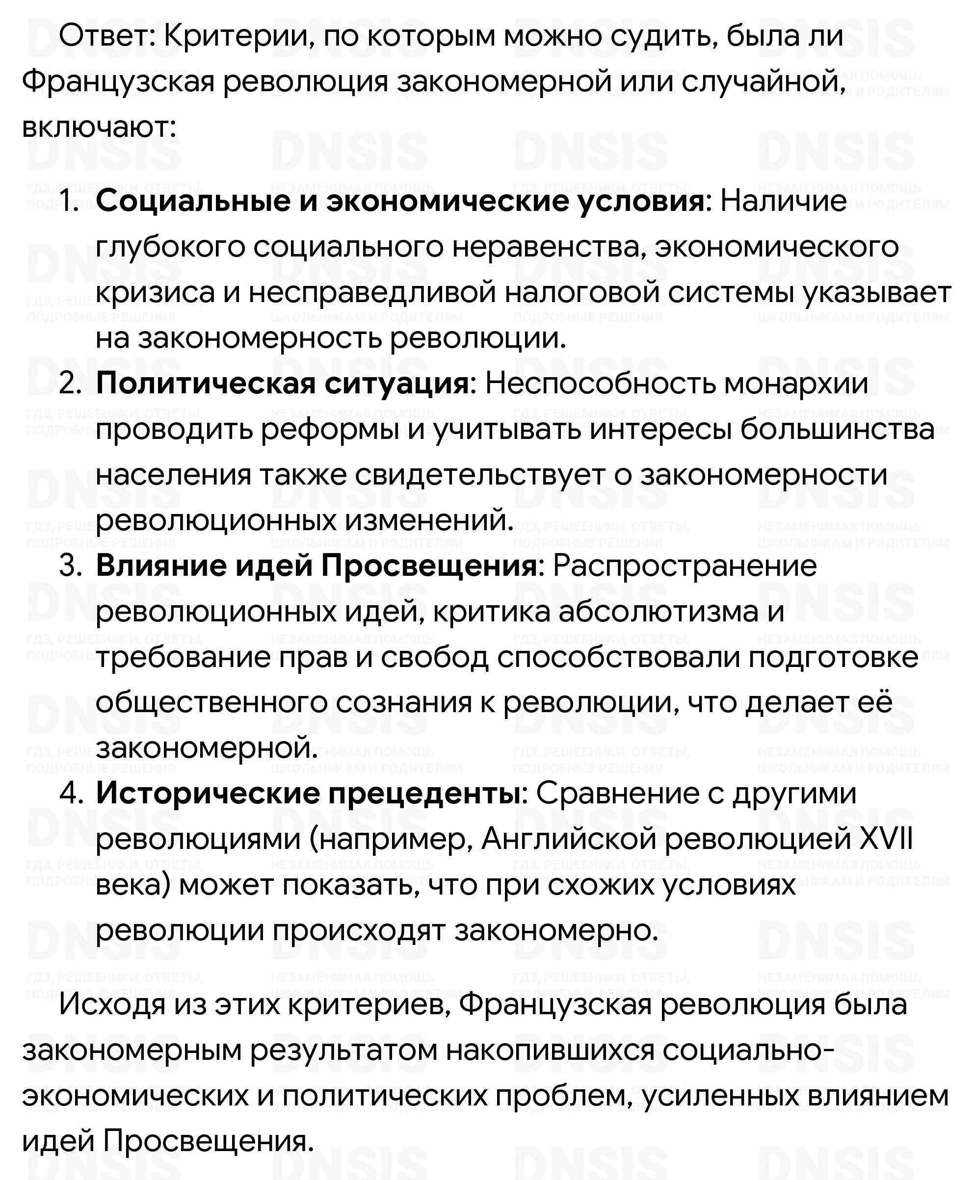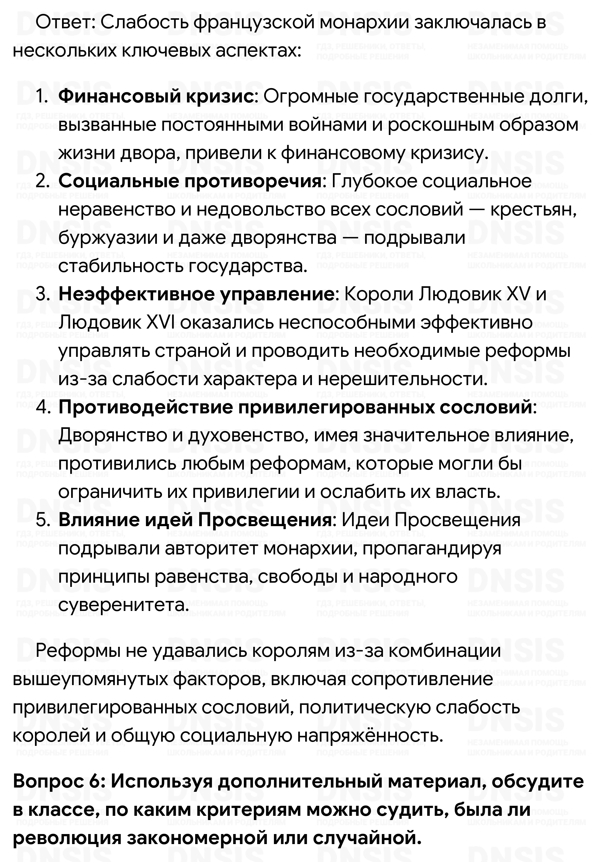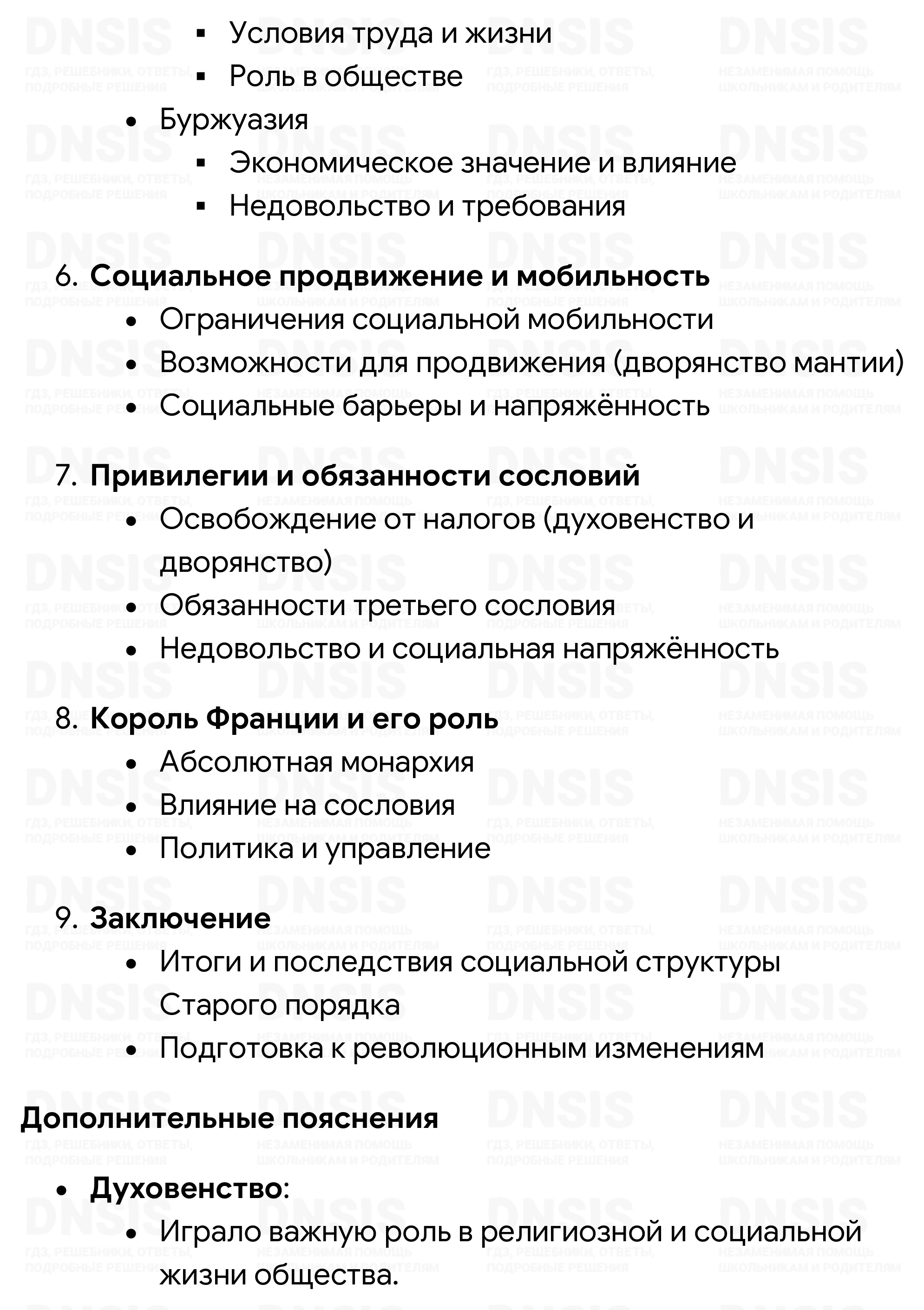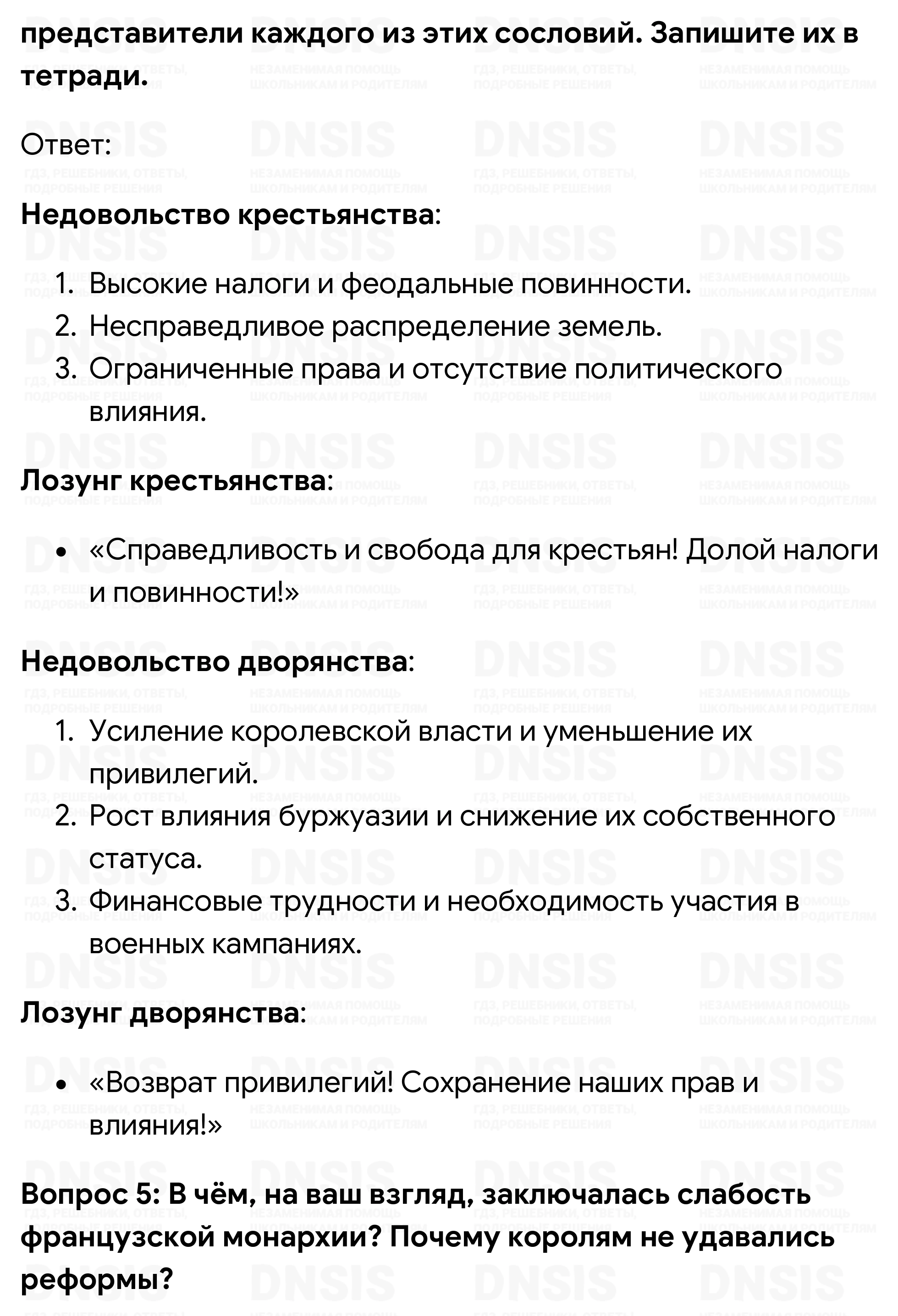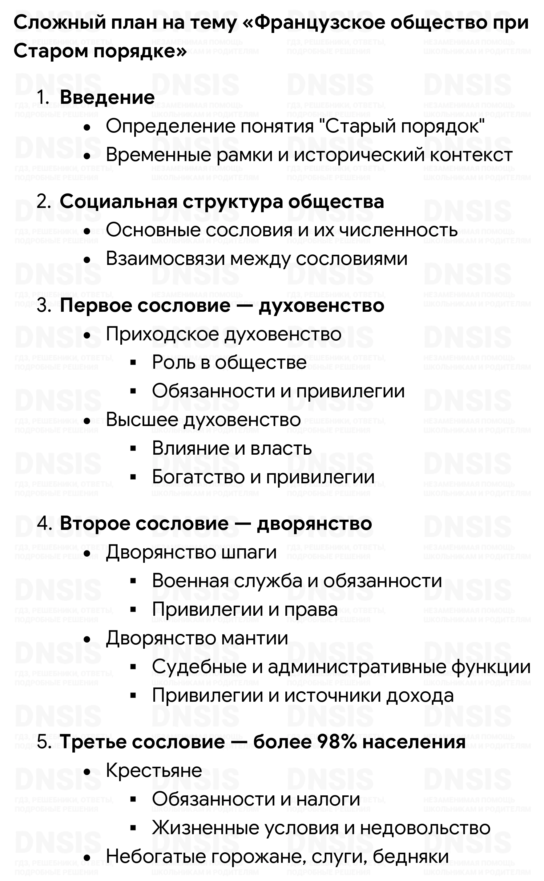 1. Используя дополнительные источники информации, выясните, что в XVIII в. вызвало в мире высокую популярность Франции, её языка и товаров. 2. На основе текста параграфа и схемы на с. 92 составьте в тетради сложный план на тему «Французское общество при Старом порядке». 3. С помощью дополнительных источников информации, выясните значение понятия «социальная мобильность». На основе текста параграфа и схемы на с. 92 сделайте вывод о том, существовала ли социальная мобильность во французском обществе при Старом порядке. 4. Чем было недовольно французское крестьянство, а чем — дворянство? Придумайте лозунги, которыми могли бы выразить своё недовольство представители каждого из этих сословий. Запишите их в тетради. 5. В чём, на ваш взгляд, заключалась слабость французской монархии? Почему королям не удавались реформы? 6. Используя дополнительный материал, обсудите в классе, по каким критериям можно судить, была ли революция закономерной или случайной.