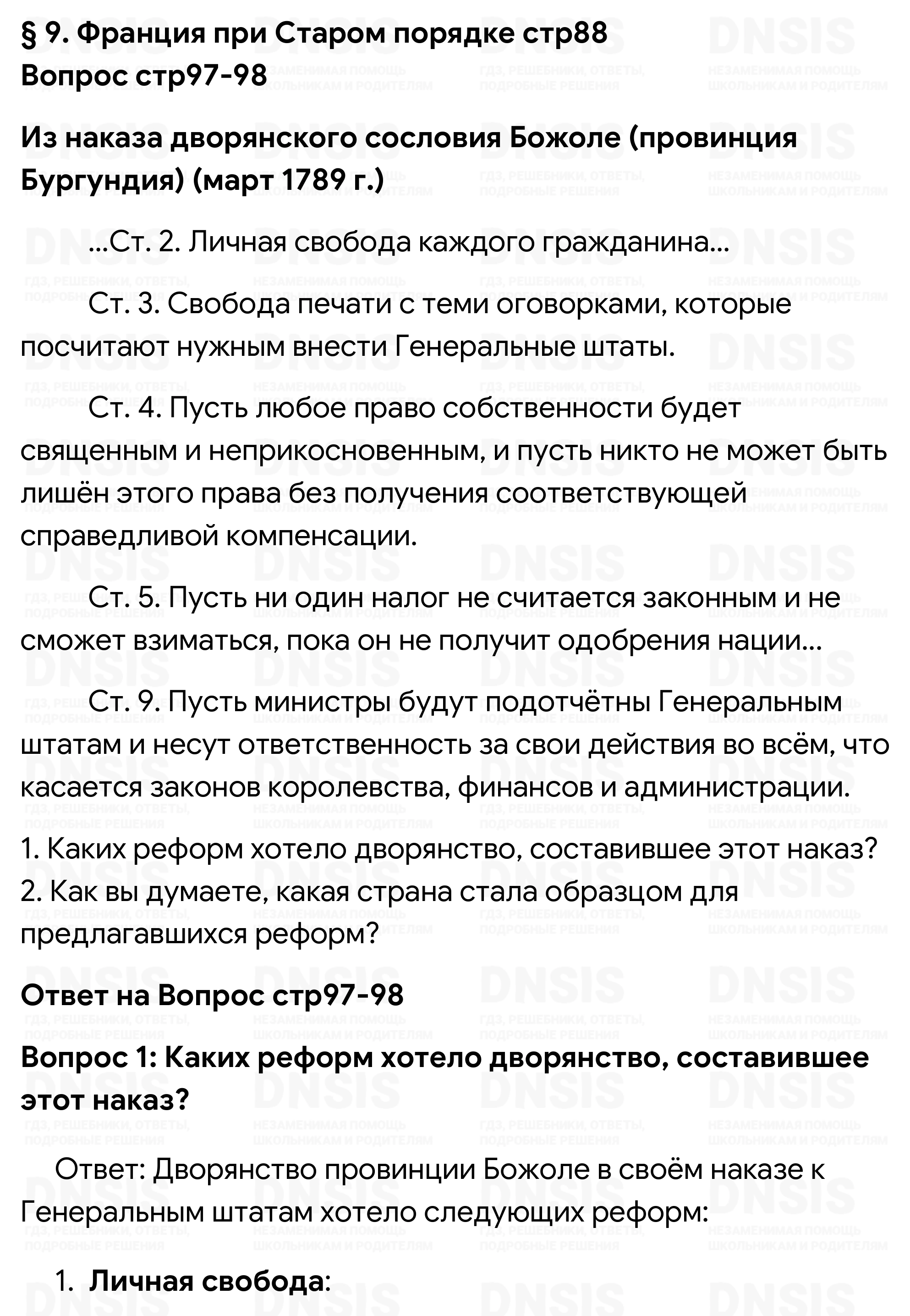 1. Каких реформ хотело дворянство, составившее этот наказ? 2. Как вы думаете, какая страна стала образцом для предлагавшихся реформ?