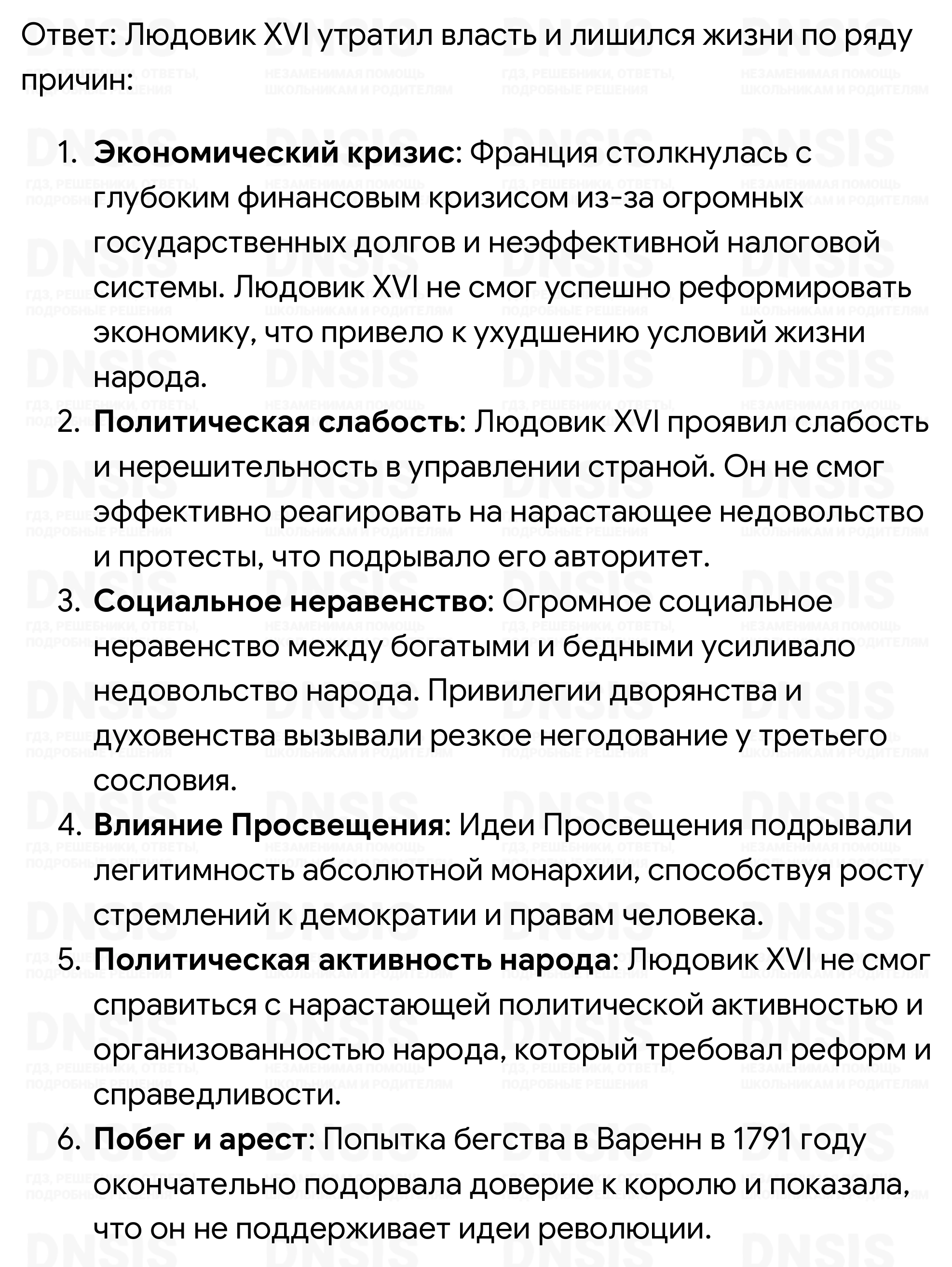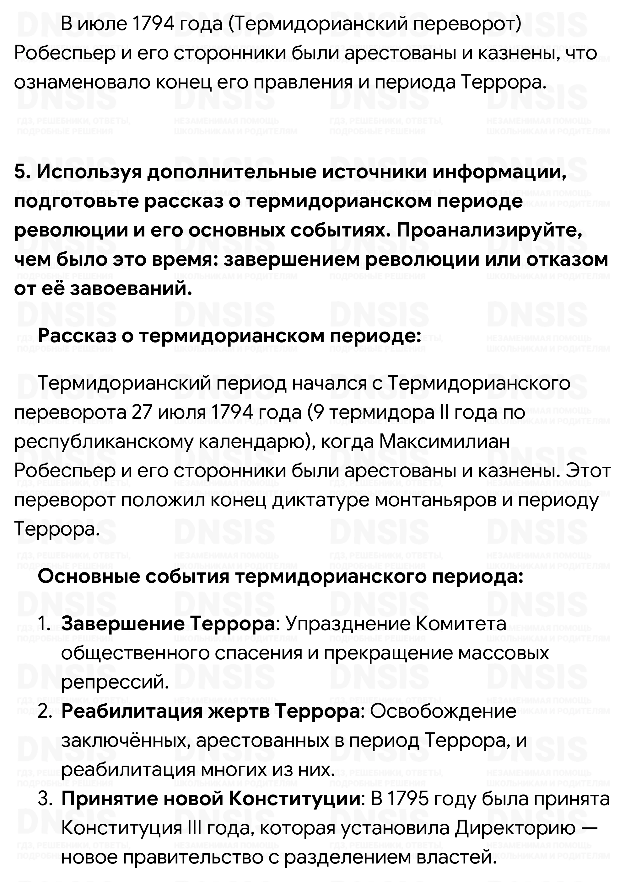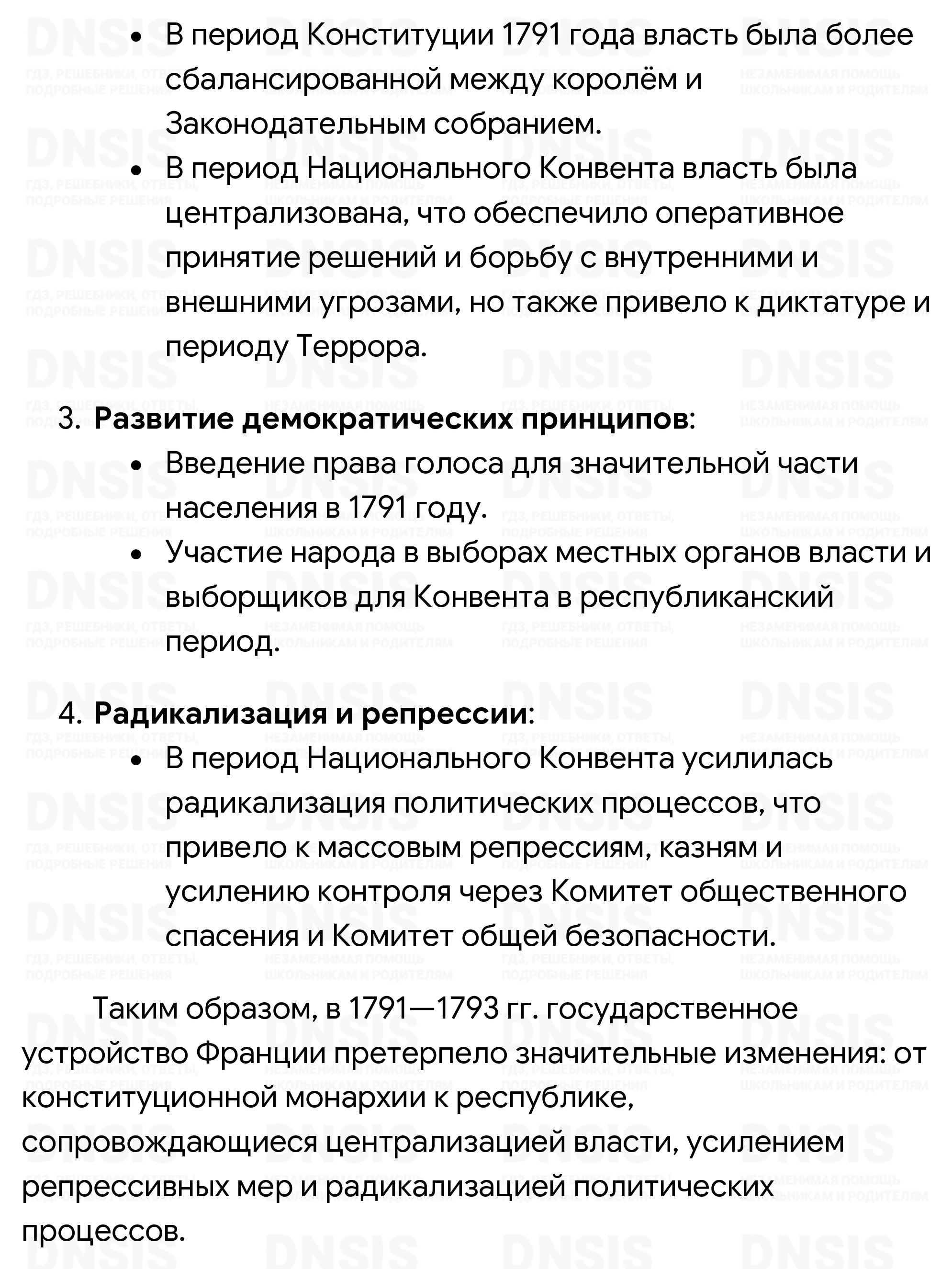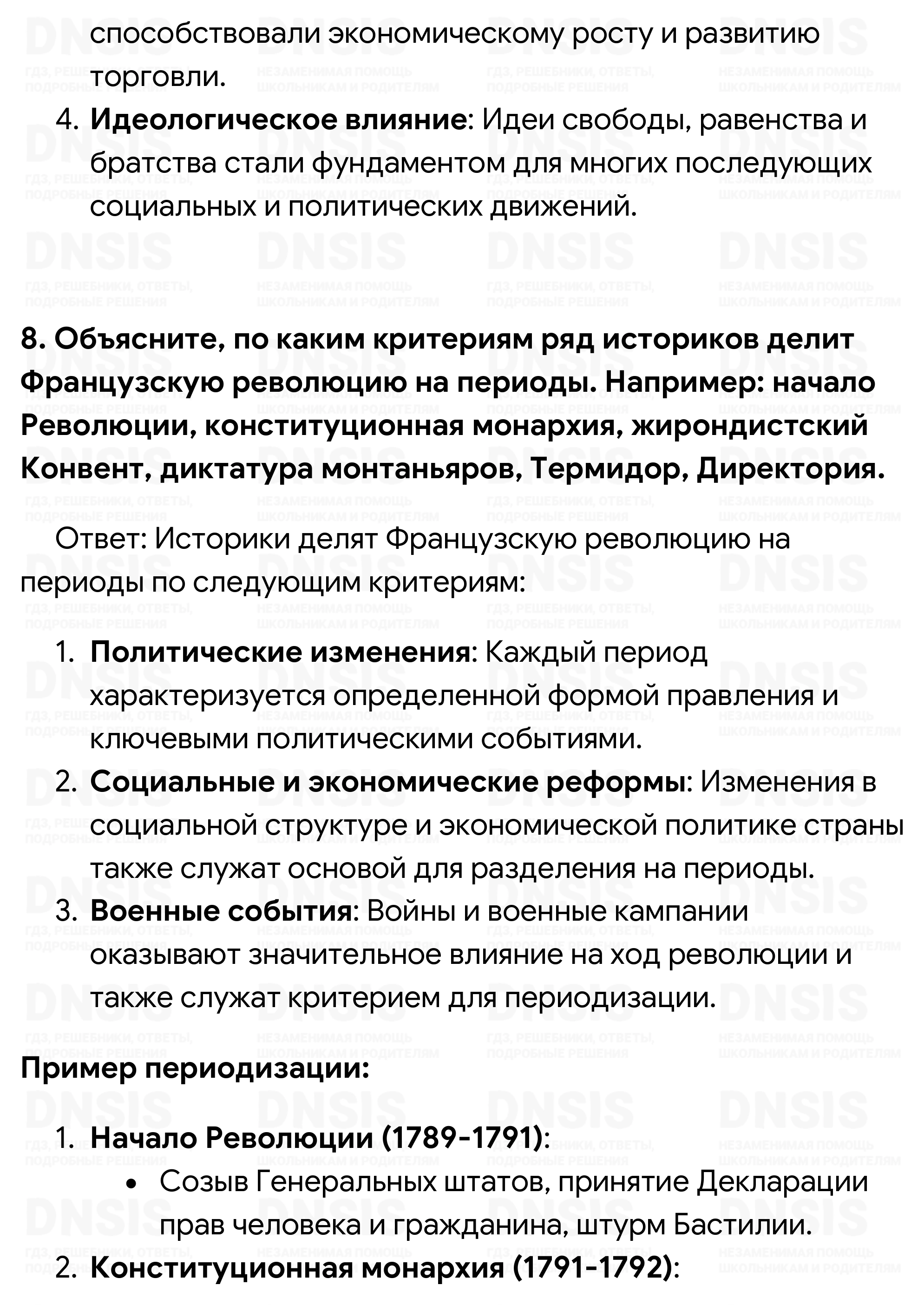 1. Почему, с вашей точки зрения, Людовик XVI утратил власть и лишился жизни? 2. Используя схемы на с. 147 и 155, проследите эволюцию государственного устройства Франции в 1791—1793 гг. Сделайте выводы. 3. Почему диктатуру монтаньяров называют диктатурой? Смогла ли она решить стоявшие перед ней задачи? 4. Используя дополнительные источники информации, подготовьте рассказ об одном из деятелей революции. 5. Используя дополнительные источники информации, подготовьте рассказ о термидорианском периоде революции и его основных событиях. Проанализируйте, чем было это время: завершением революции или отказом от её завоеваний. 6. Используя Интернет и другие источники информации, выясните, по каким направлениям велись основные завоевательные походы этого периода. Что было их причиной? 7. Каковы, по-вашему, наиболее важные итоги революции? Как она повлияла на жизнь Франции и всей Европы? 8. Объясните, по каким критериям ряд историков делит Французскую революцию на периоды. Например: начало Революции, конституционная монархия, жирондистский Конвент, диктатура монтаньяров, Термидор, Директория.