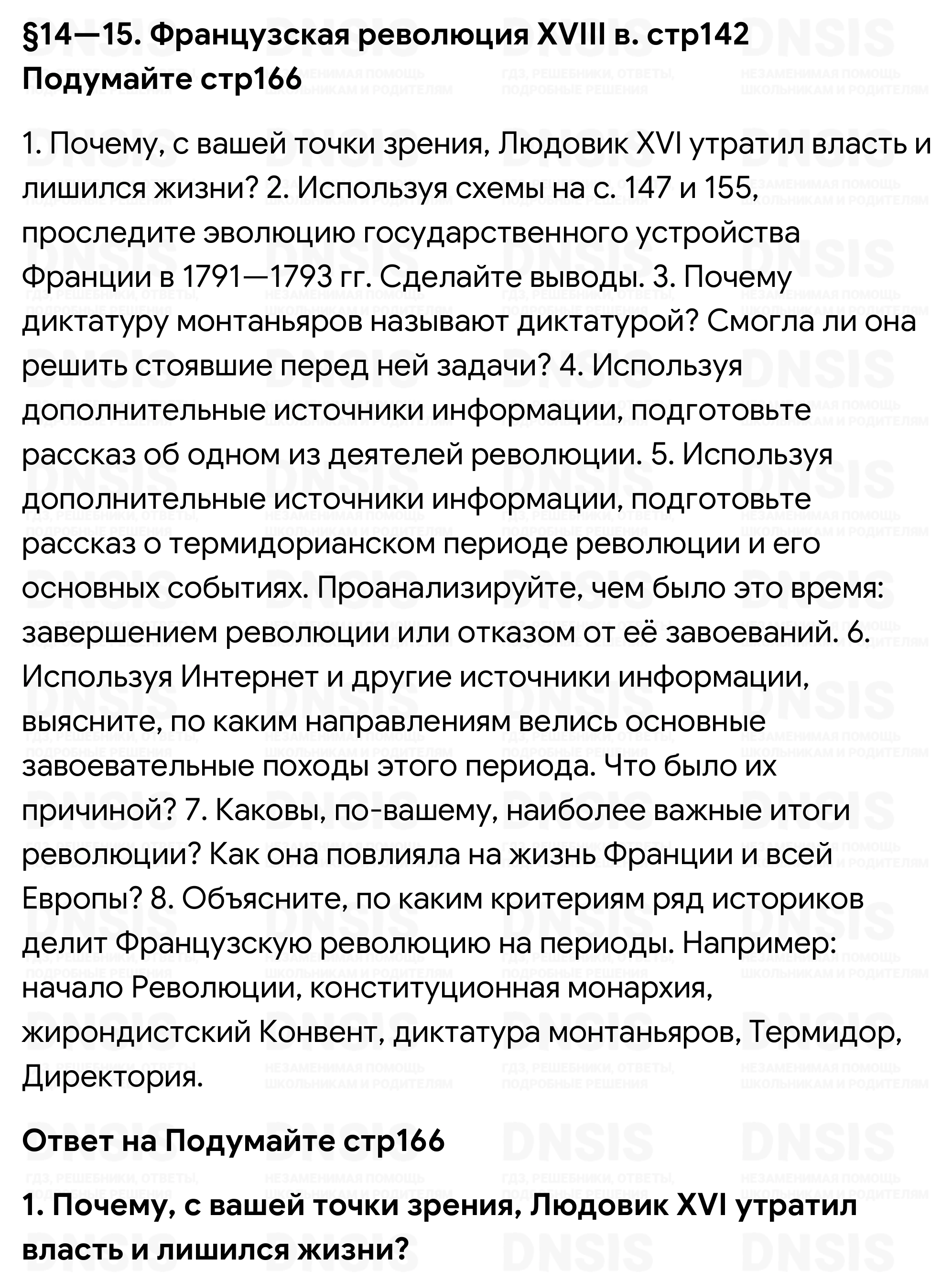 ГДЗ: Подумайте стр166 - §14-15 , Глава III Эпоха революций , Всеобщая история. История Нового времени. XVIII век. 8 класс, Учебник, Юдовская, Баранов