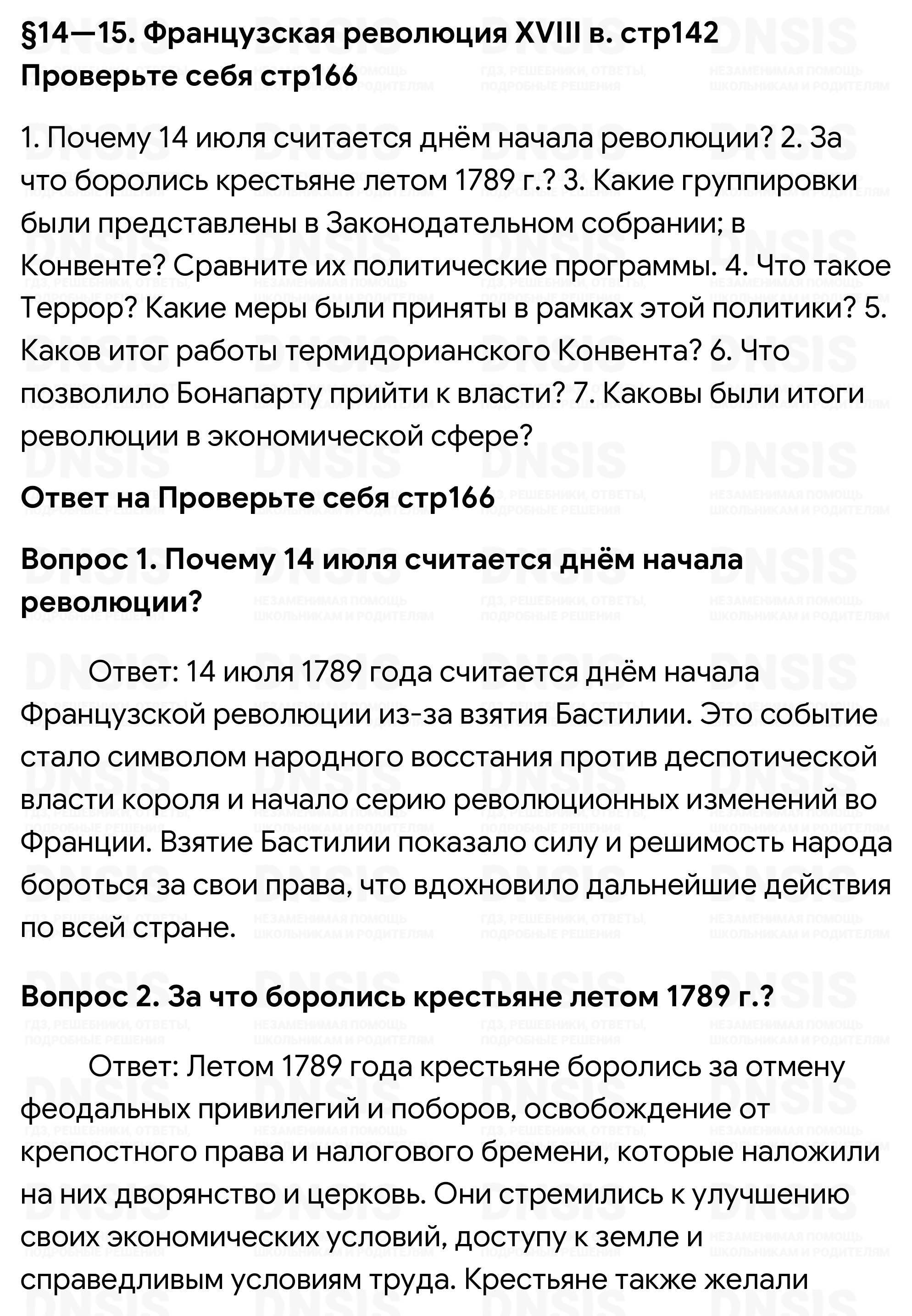 ГДЗ: Проверьте себя стр166 - §14-15 , Глава III Эпоха революций , Всеобщая история. История Нового времени. XVIII век. 8 класс, Учебник, Юдовская, Баранов