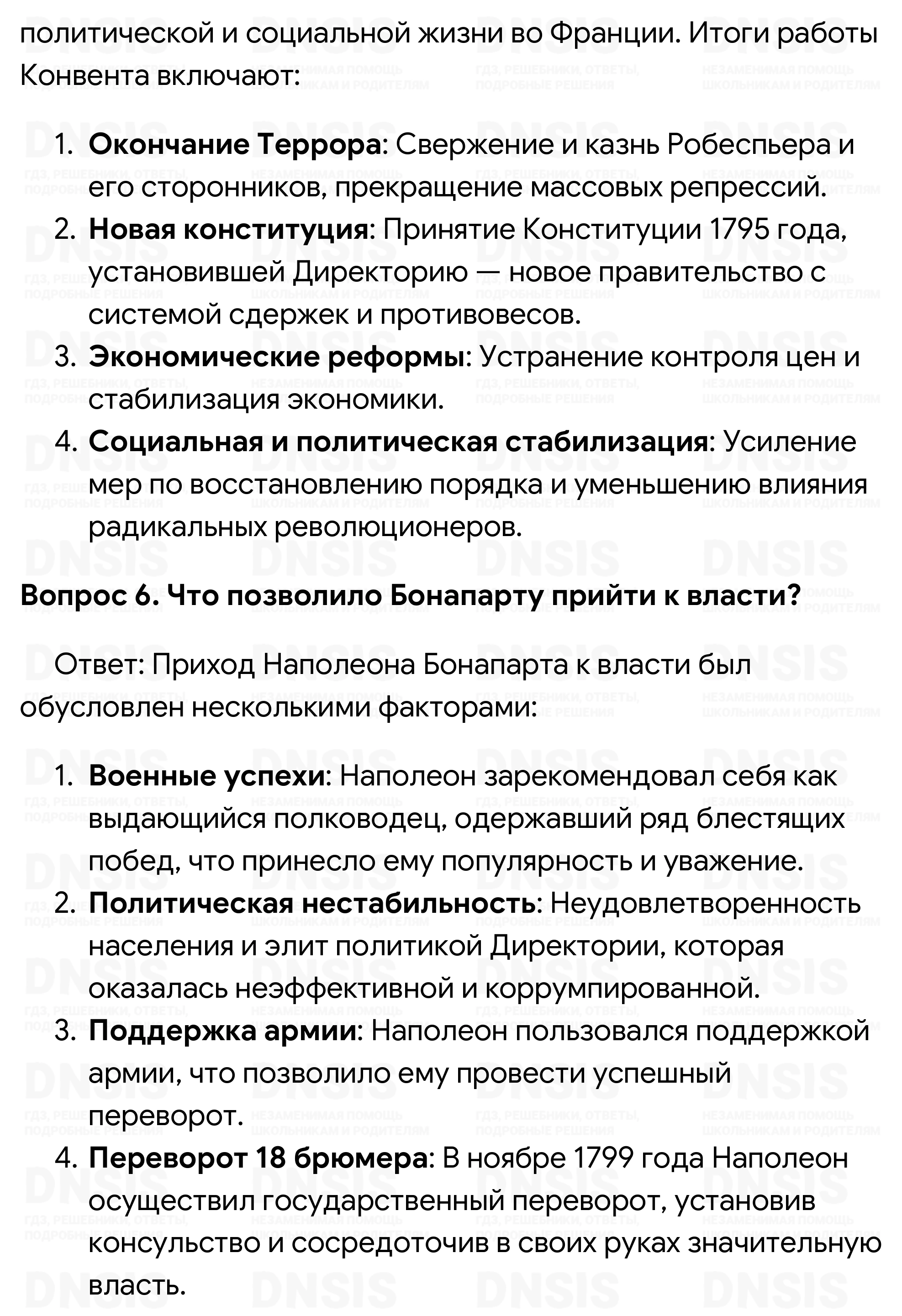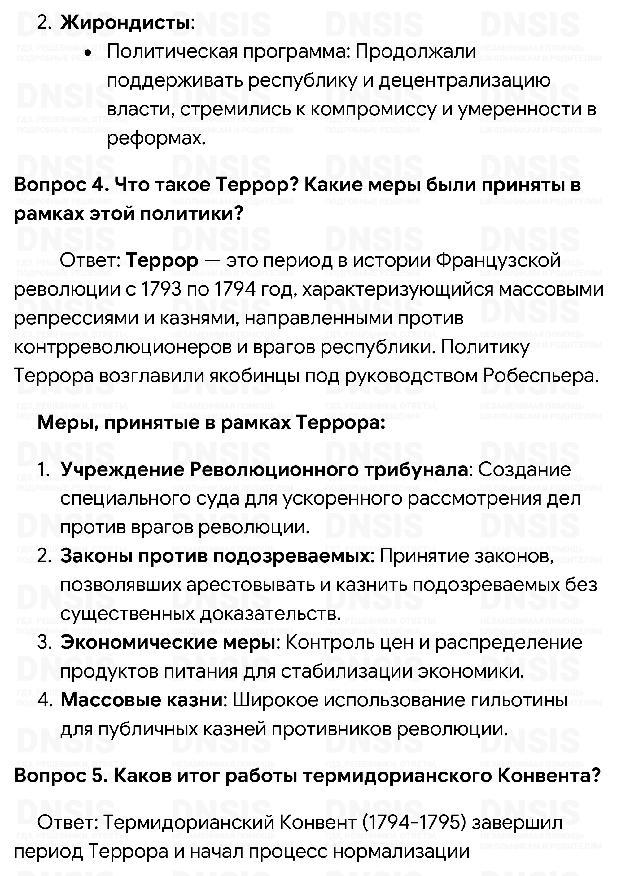 1. Почему 14 июля считается днём начала революции? 2. За что боролись крестьяне летом 1789 г.? 3. Какие группировки были представлены в Законодательном собрании; в Конвенте? Сравните их политические программы. 4. Что такое Террор? Какие меры были приняты в рамках этой политики? 5. Каков итог работы термидорианского Конвента? 6. Что позволило Бонапарту прийти к власти? 7. Каковы были итоги революции в экономической сфере?