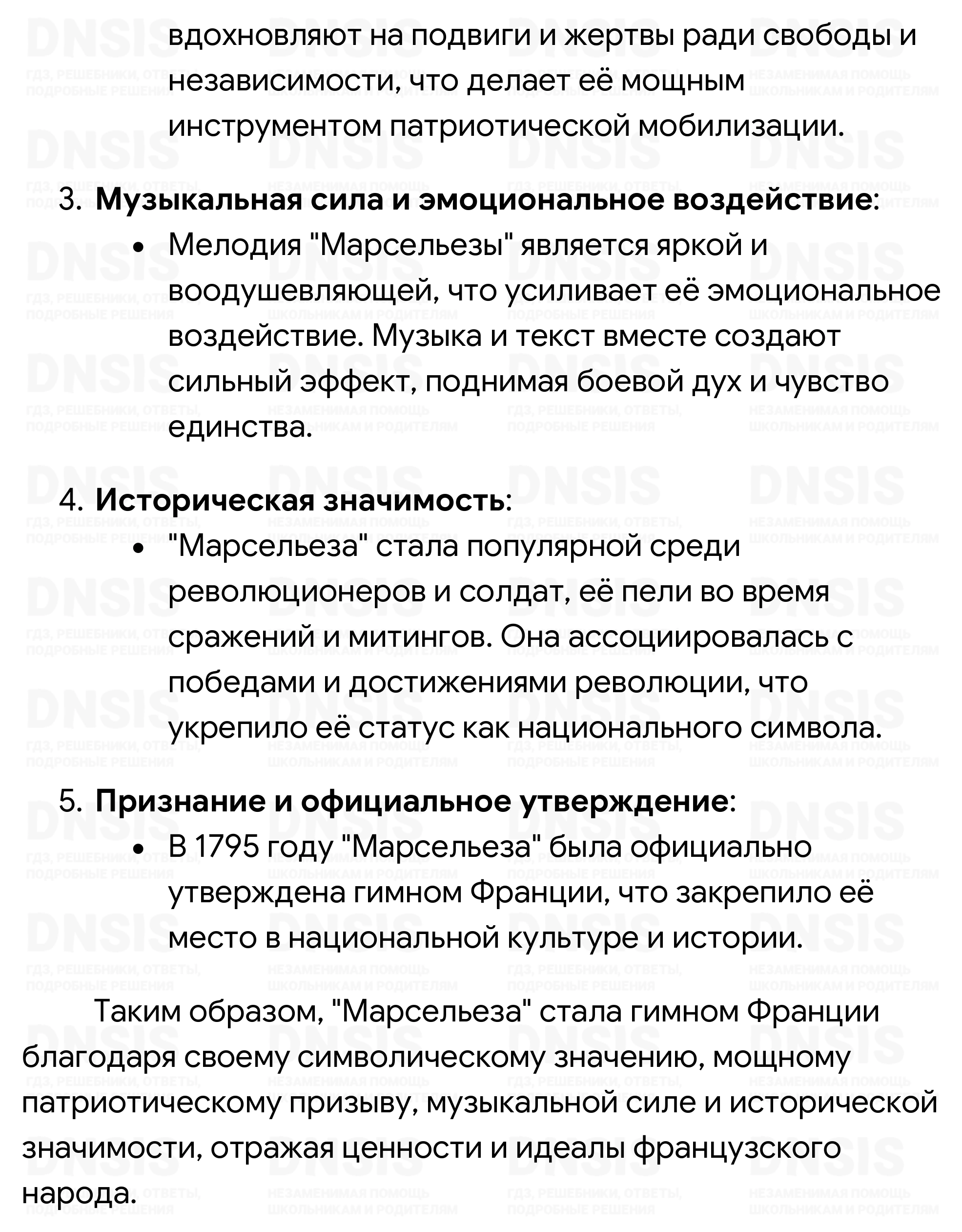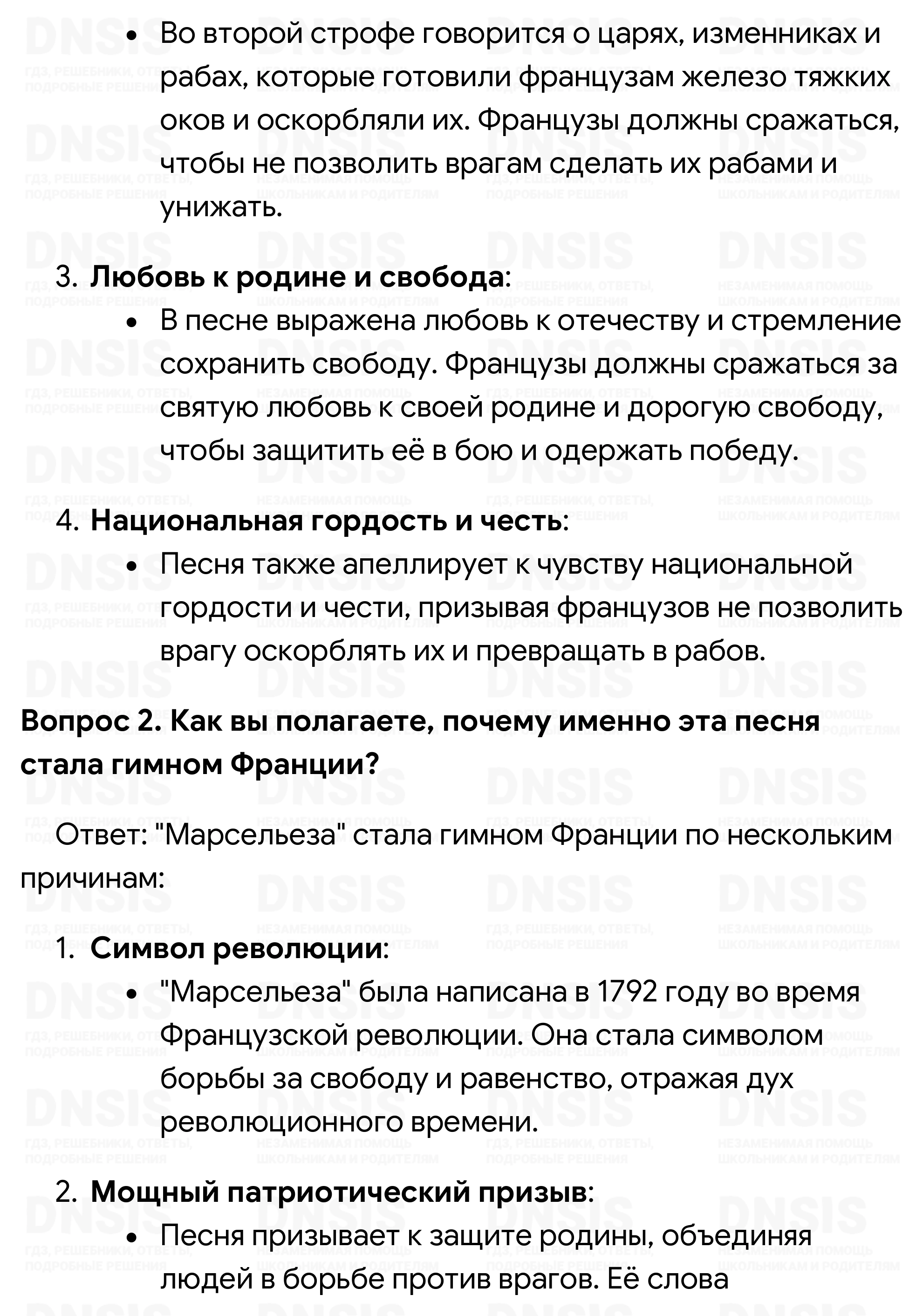 1. Как объясняется в песне, что должно заставить французов сражаться за свою страну? 2. Как вы полагаете, почему именно эта песня стала гимном Франции?