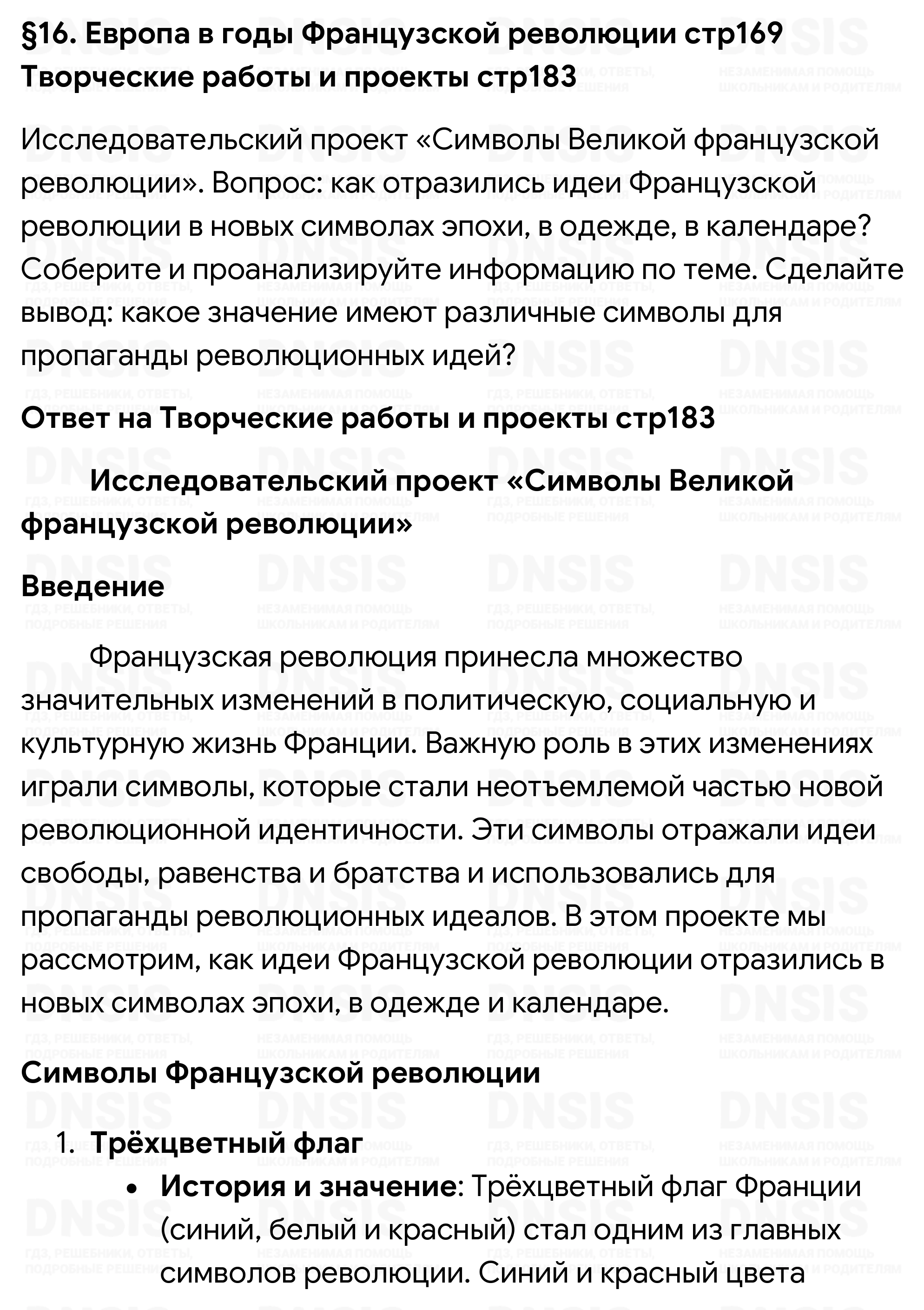 ГДЗ: Творческие работы и проекты стр183 - §16 , Глава III Эпоха революций , Всеобщая история. История Нового времени. XVIII век. 8 класс, Учебник, Юдовская, Баранов