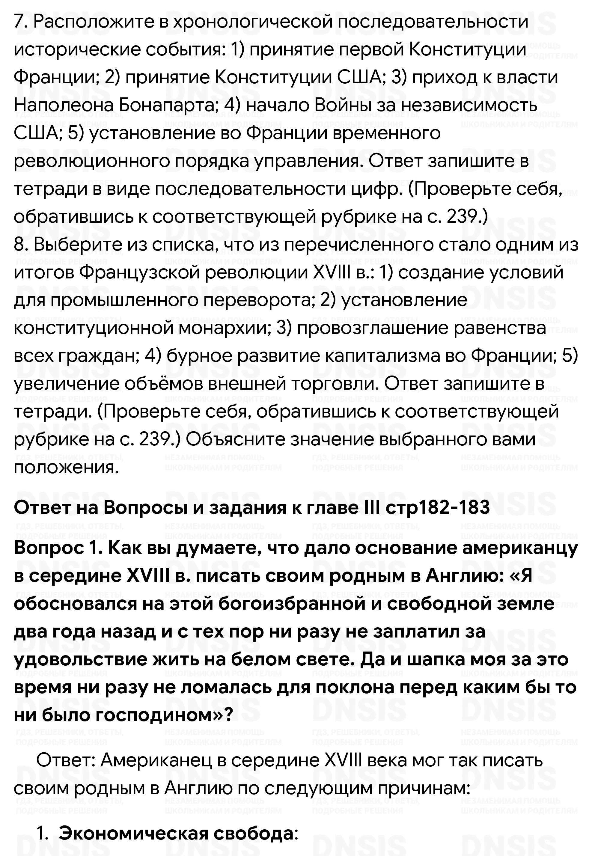 ГДЗ: Вопросы и задания к главе III стр182-183 - §16 , Глава III Эпоха революций , Всеобщая история. История Нового времени. XVIII век. 8 класс, Учебник, Юдовская, Баранов