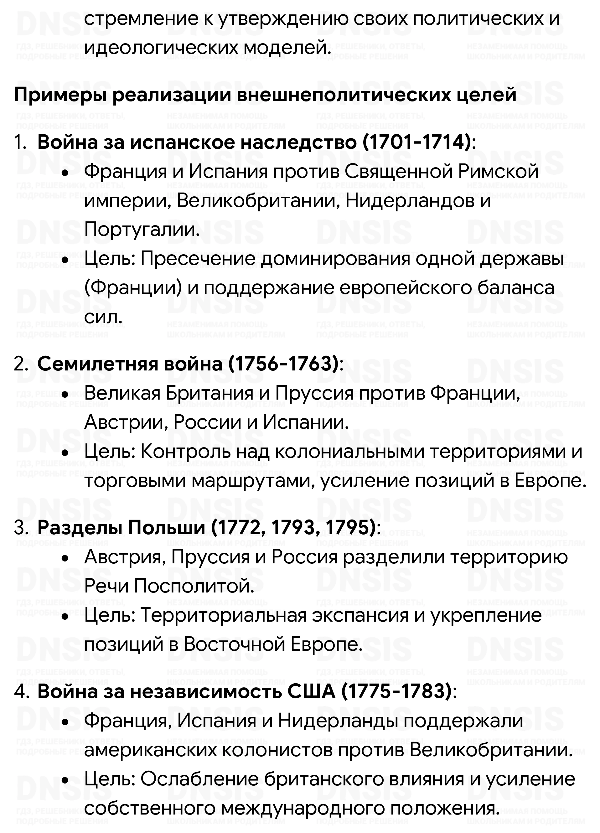 Какие цели преследовала внешняя политика великих держав в XVIII в.?