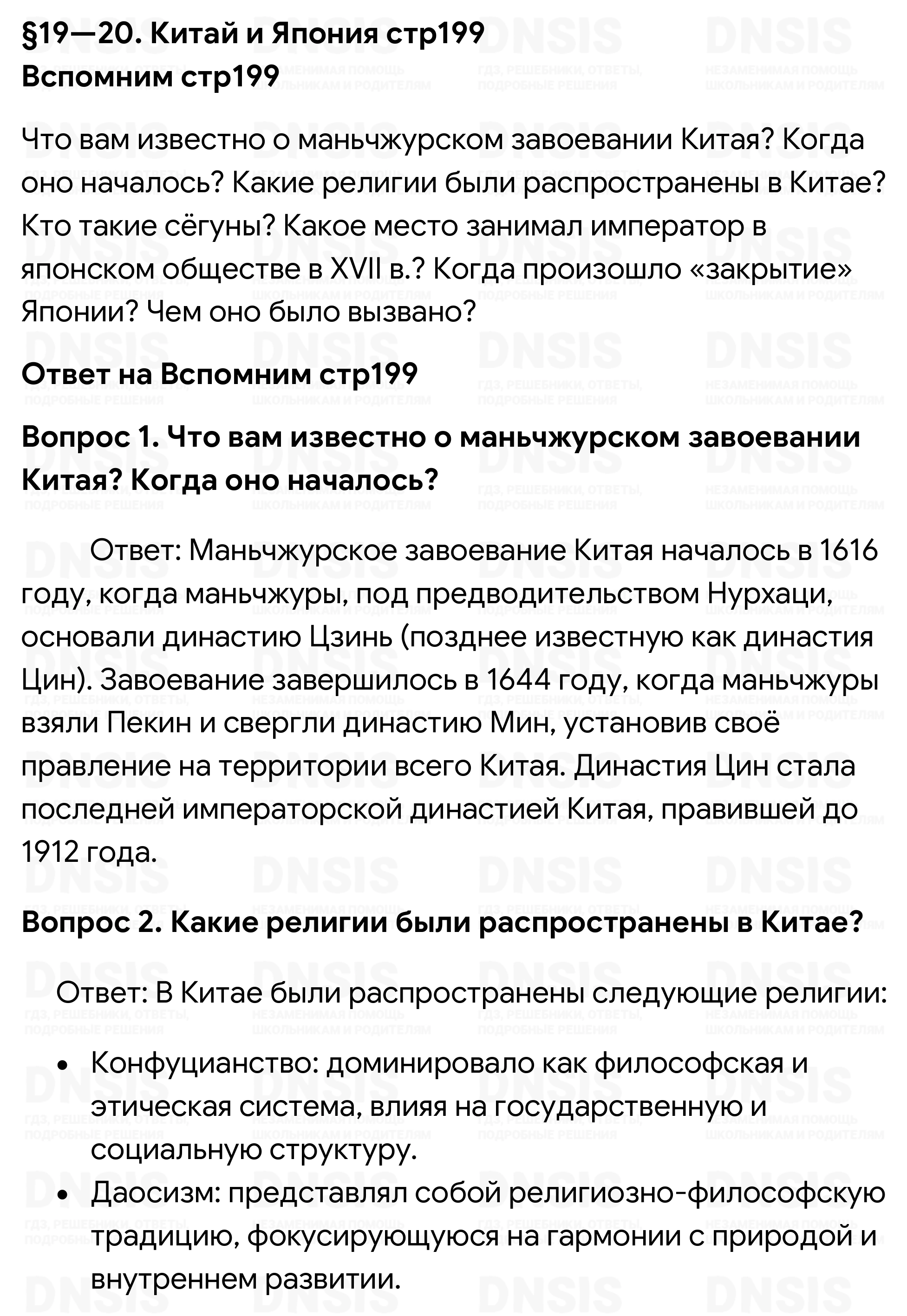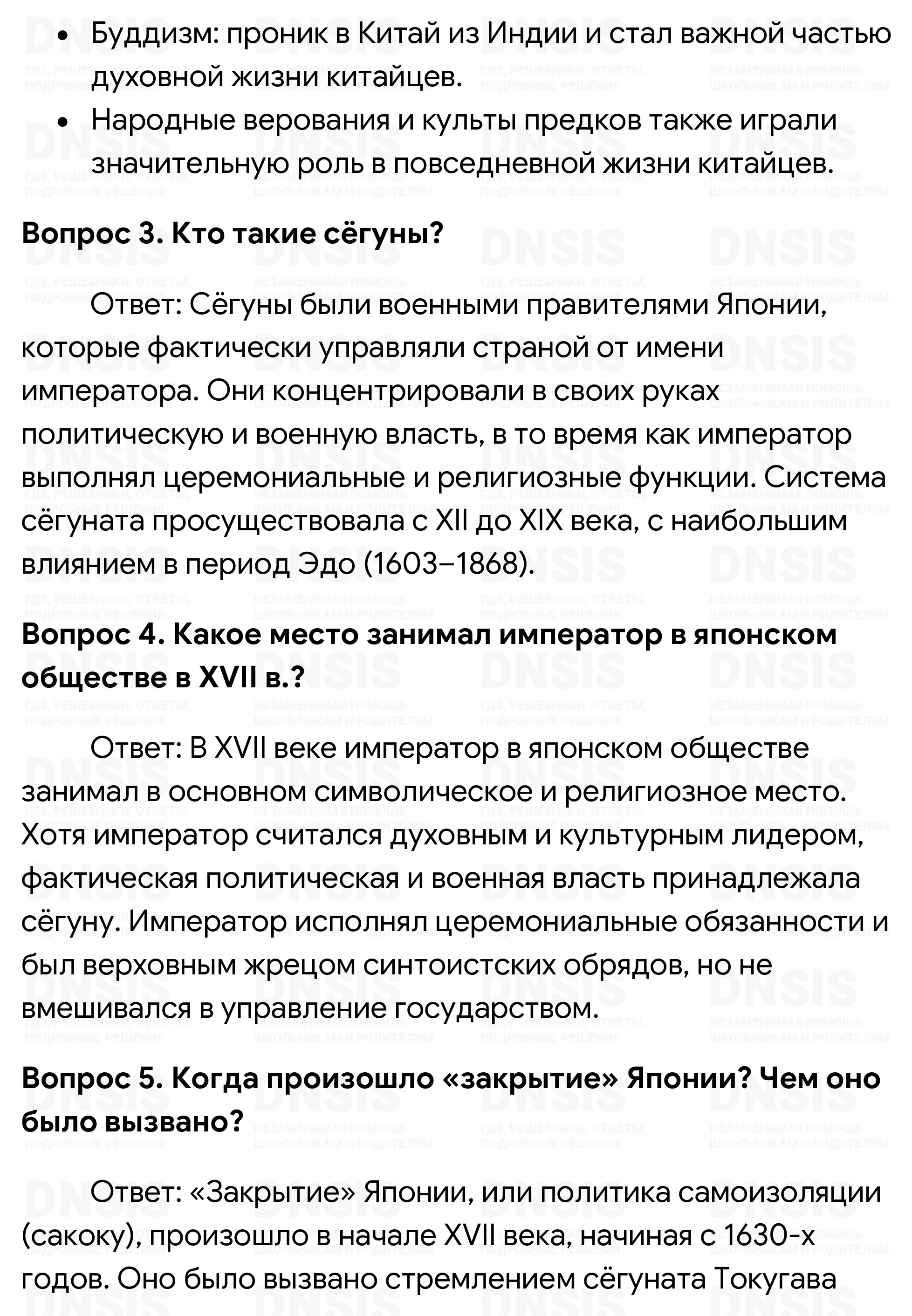 Что вам известно о маньчжурском завоевании Китая? Когда оно началось? Какие религии были распространены в Китае? Кто такие сёгуны? Какое место занимал император в японском обществе в XVII в.? Когда произошло «закрытие» Японии? Чем оно было вызвано?